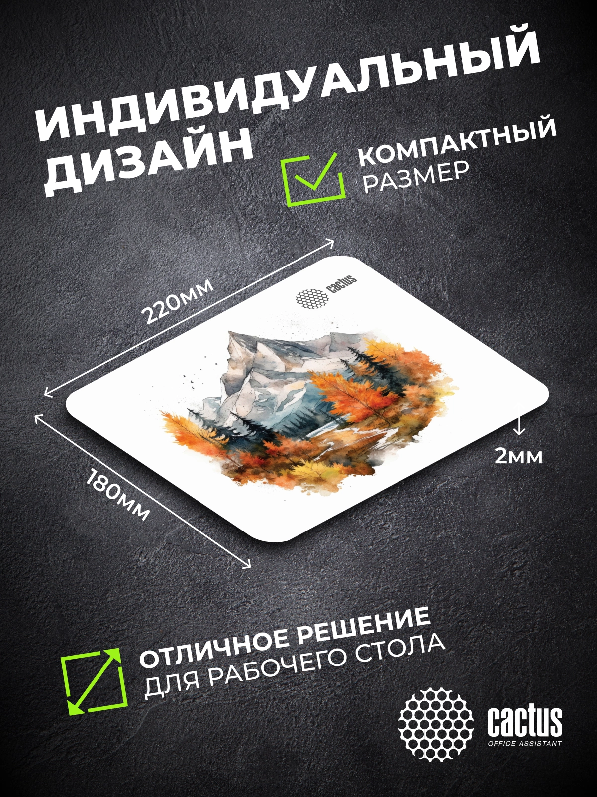 Коврик для мыши Cactus Autumn mountains 220x180x2мм [CS-MP-P10XS]