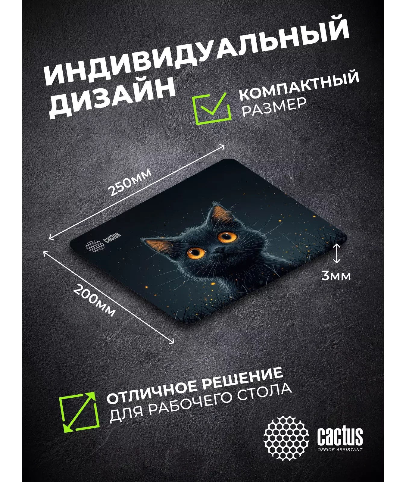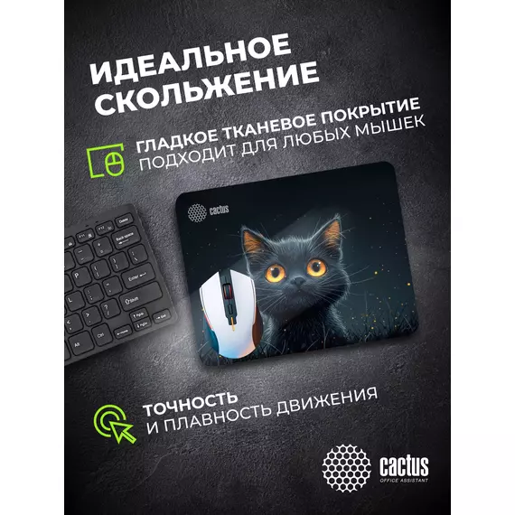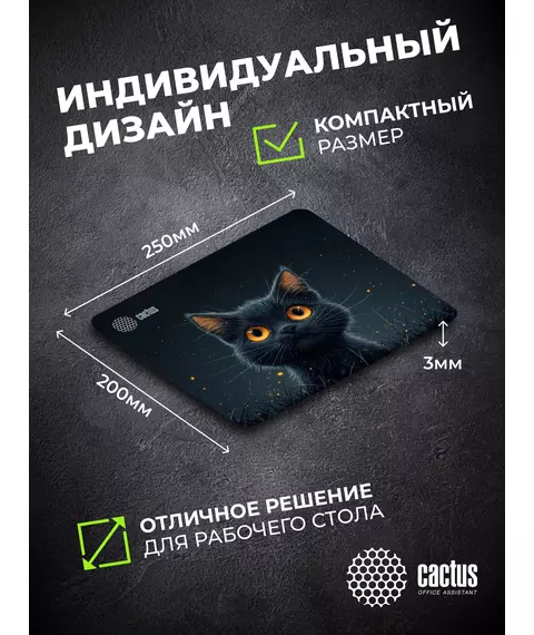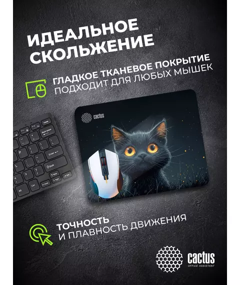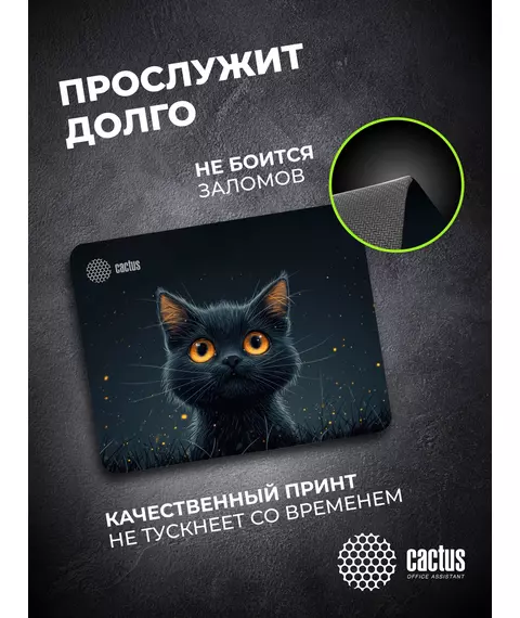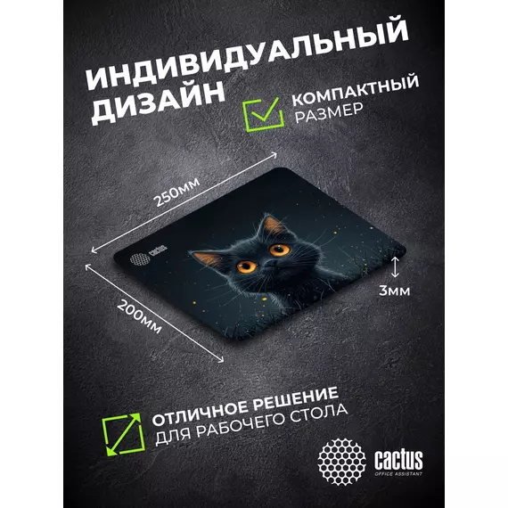 Коврик для мыши Cactus Black Cat 250x200x3мм [CS-MPC-D09S]