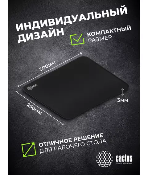 Коврик для мыши Cactus Cactus Black черный 300x250x3мм [CS-MPC-D01M]