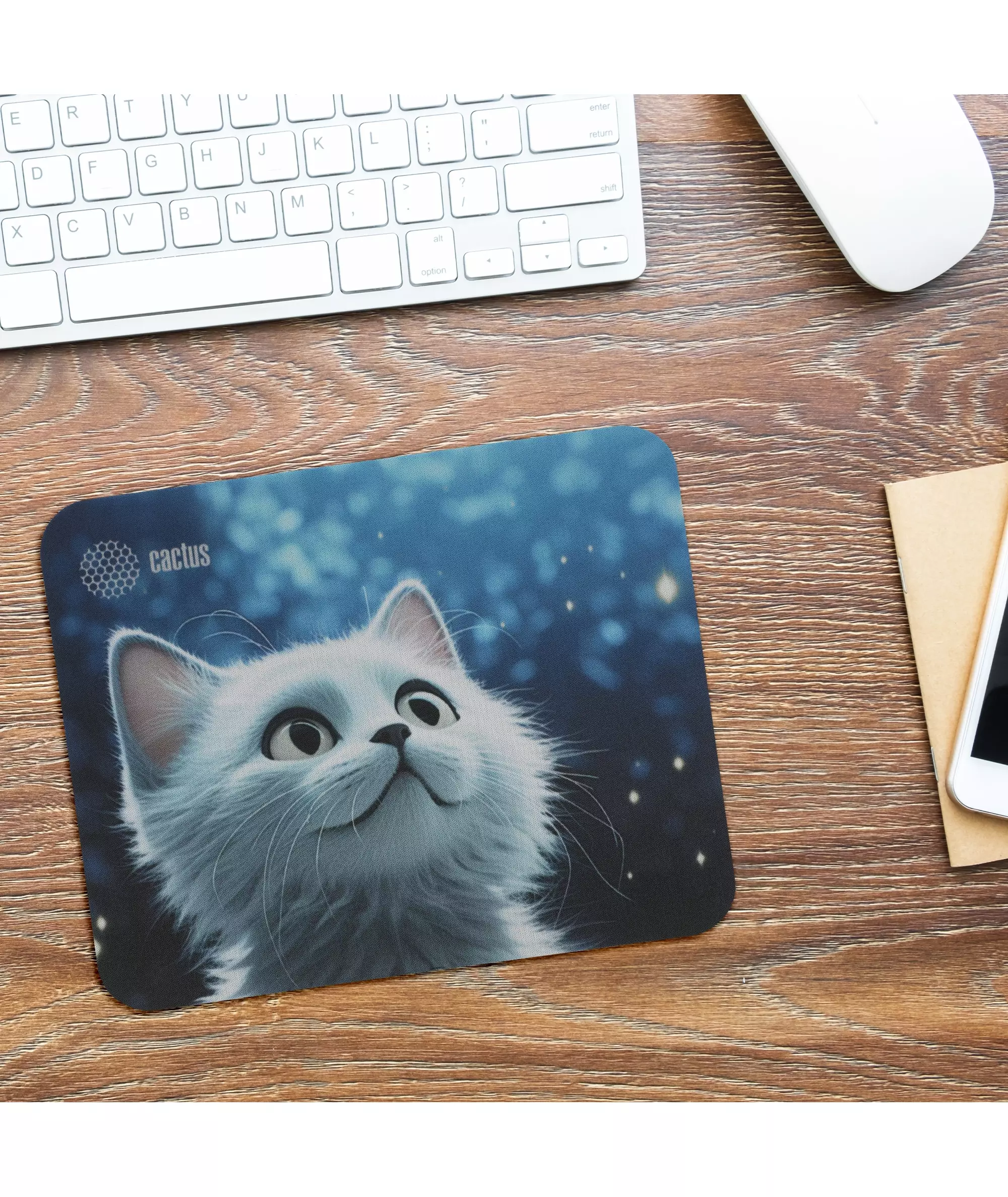 Коврик для мыши Cactus Cactus White Cat рисунок 220x180x2мм [CS-MP-P06XS]