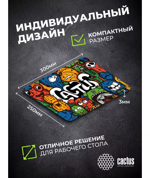 Коврик для мыши Cactus Colorful Cacti 300x250x3мм [CS-MPC-D03M]