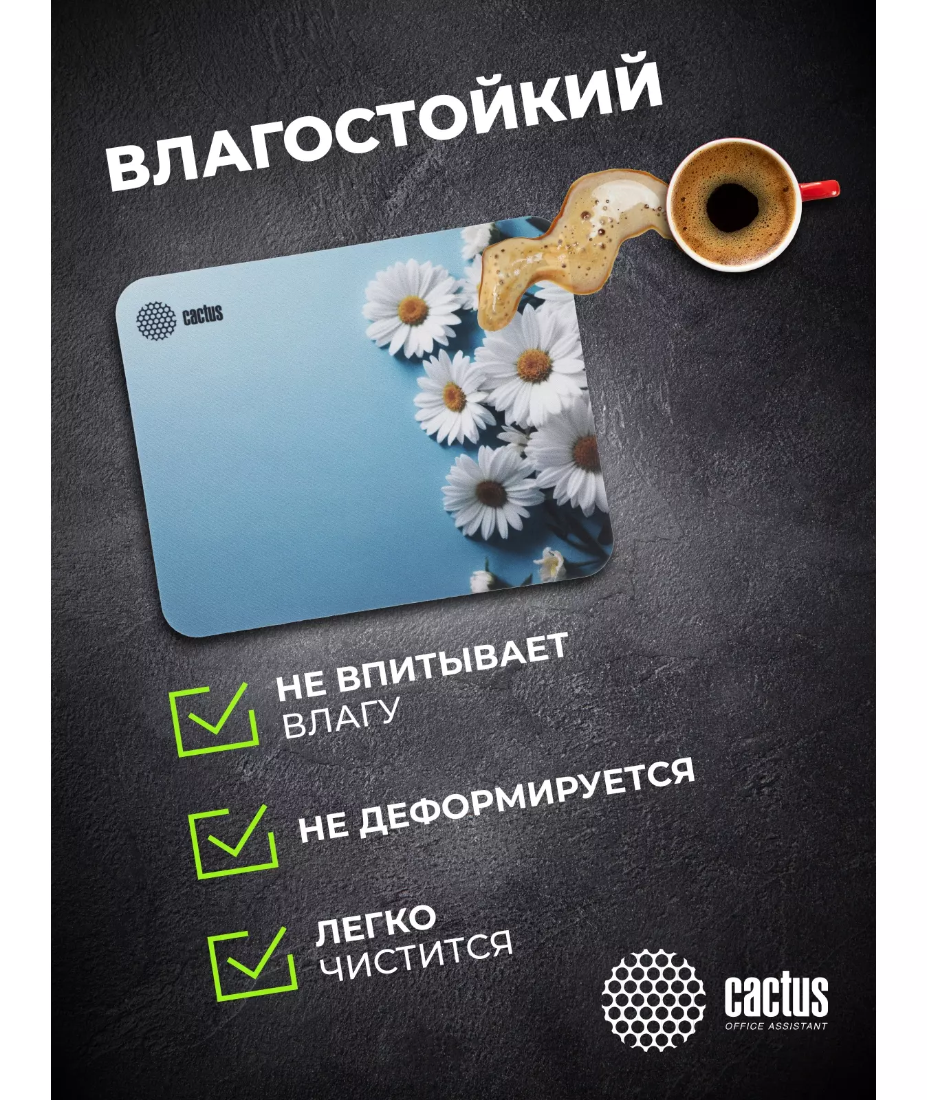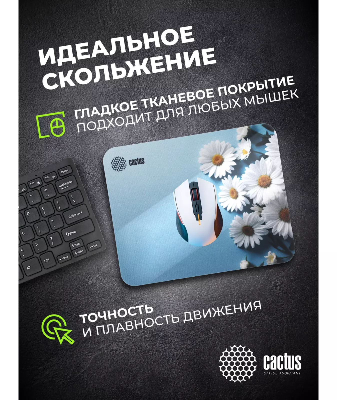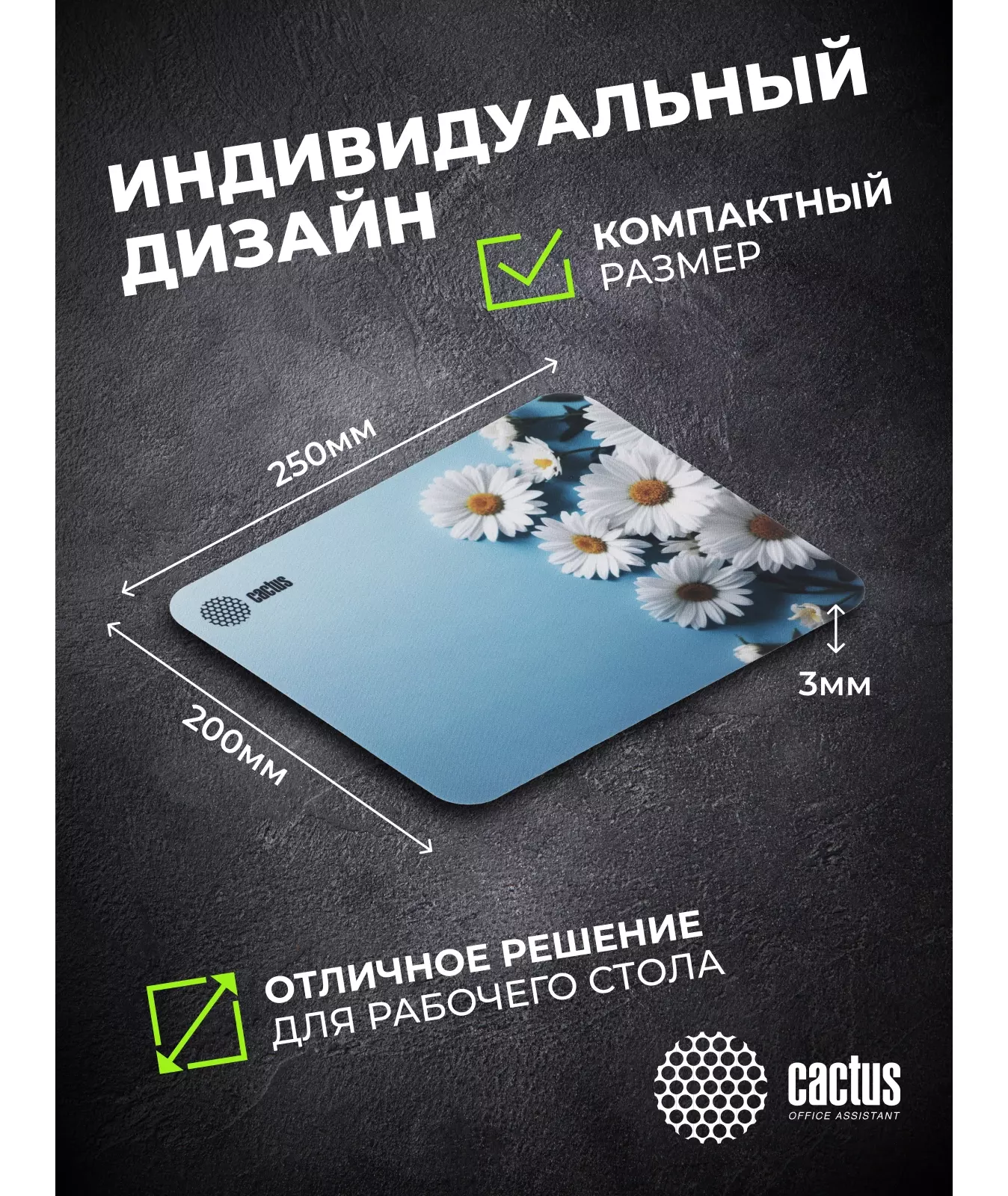 Коврик для мыши Cactus Daisies рисунок 250x200x3мм [CS-MP-D07S]