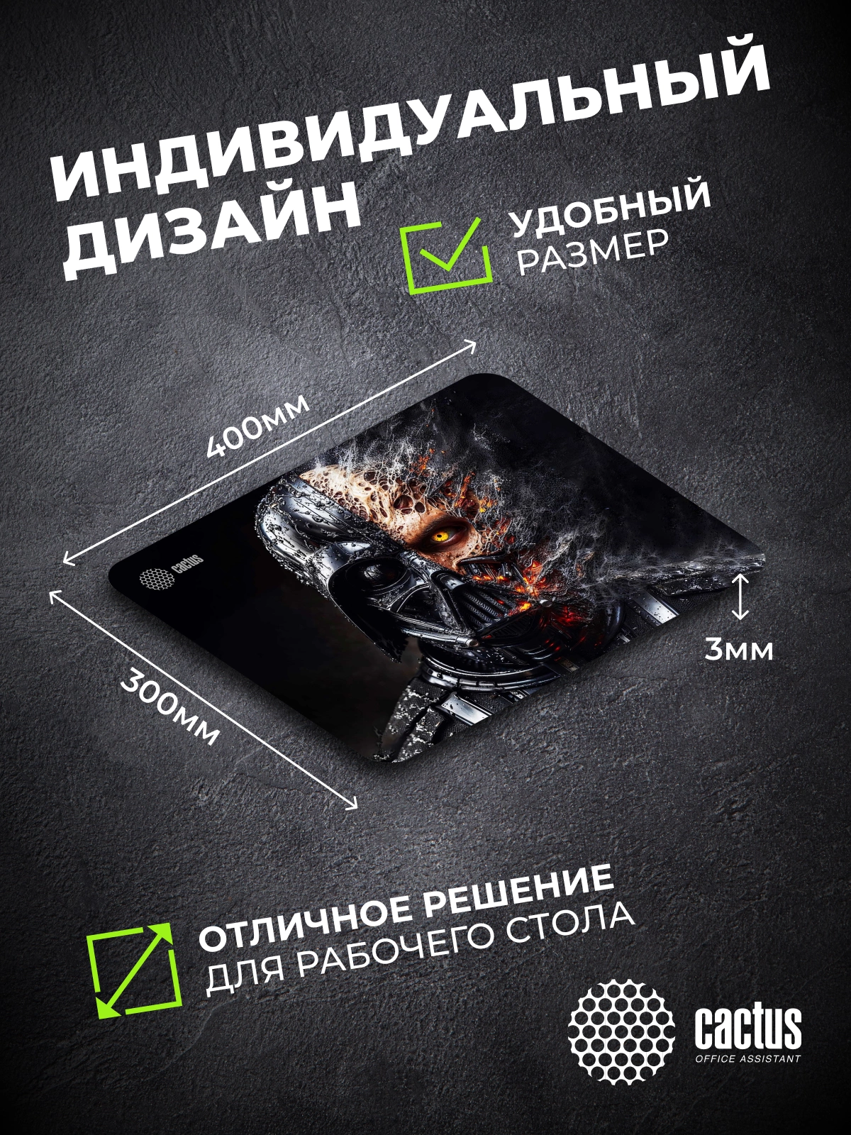 Коврик для мыши Cactus Darth Vader рисунок 400x300x3мм [CS-MP-PRO22XL]