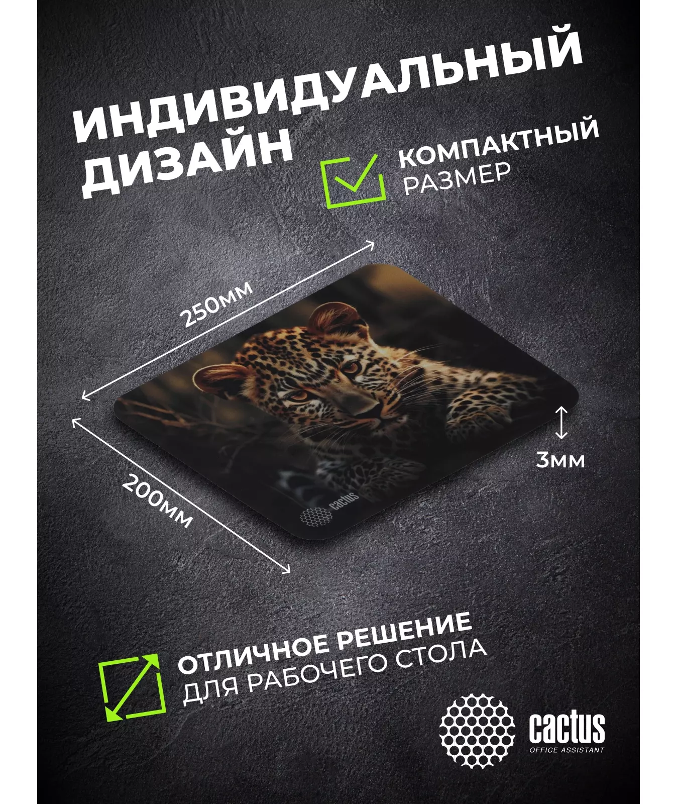 Коврик для мыши Cactus Leopard рисунок 250x200x3мм [CS-MP-D06S]