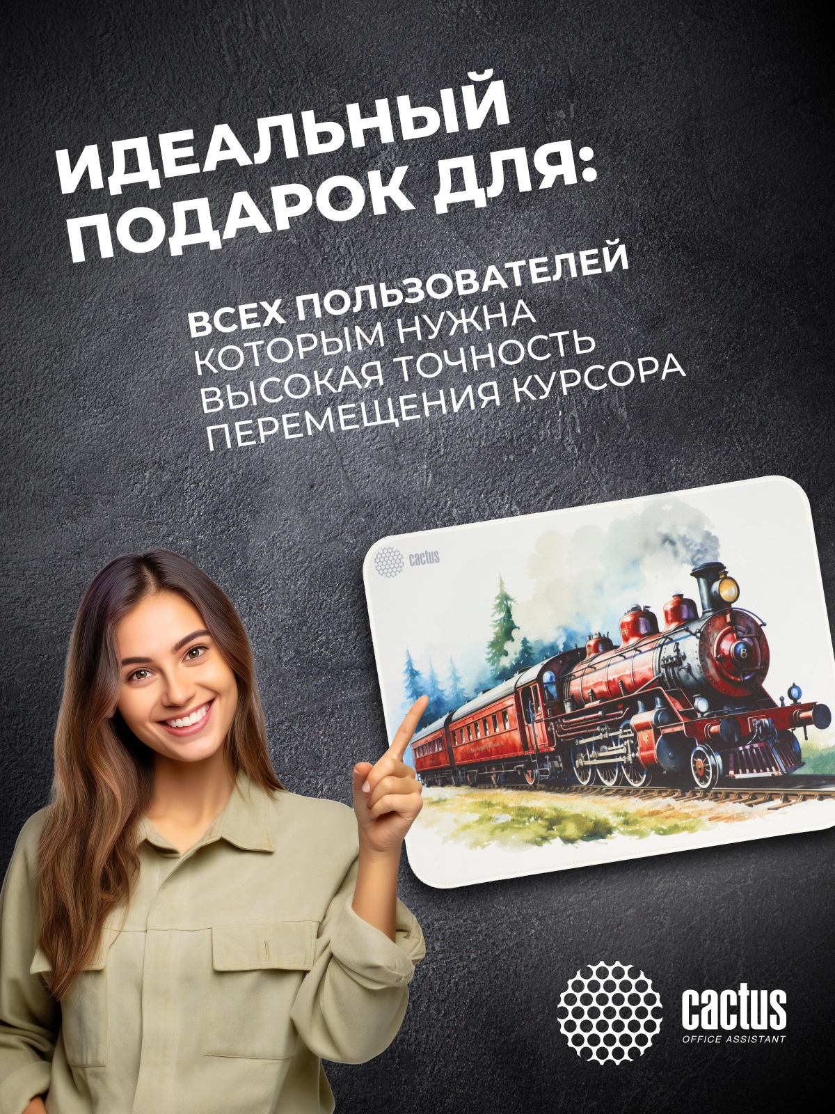 Коврик для мыши Cactus Locomotive рисунок 400x300x3мм [CS-MP-PRO17XL]
