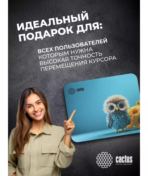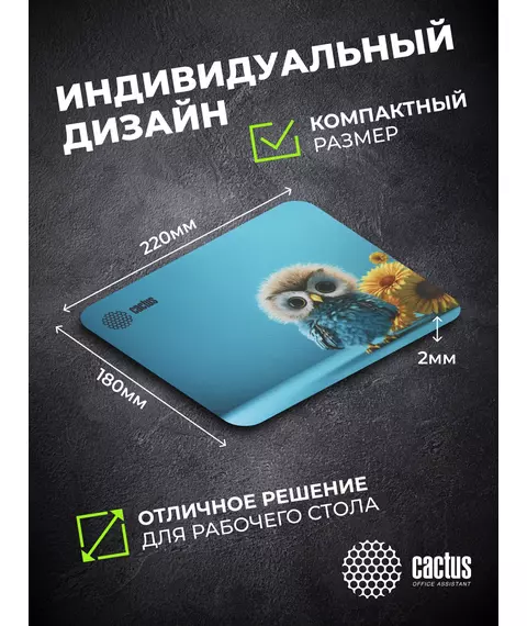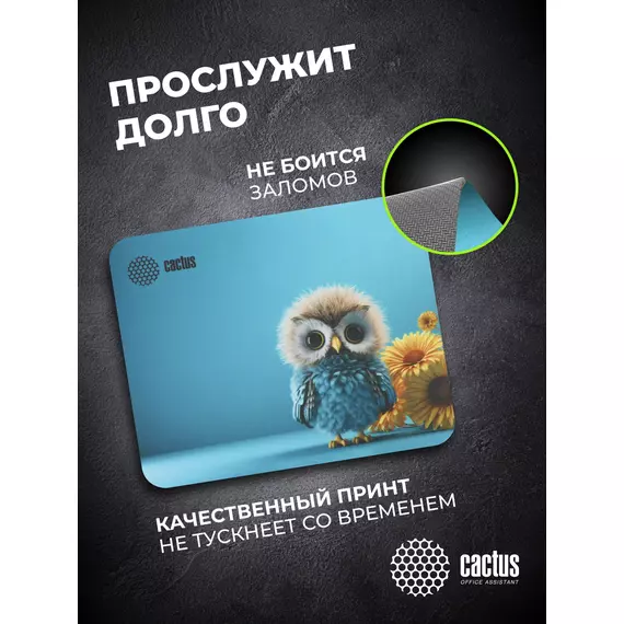 Коврик для мыши Cactus Owl blue 220x180x2мм [CS-MPC-P07XS]