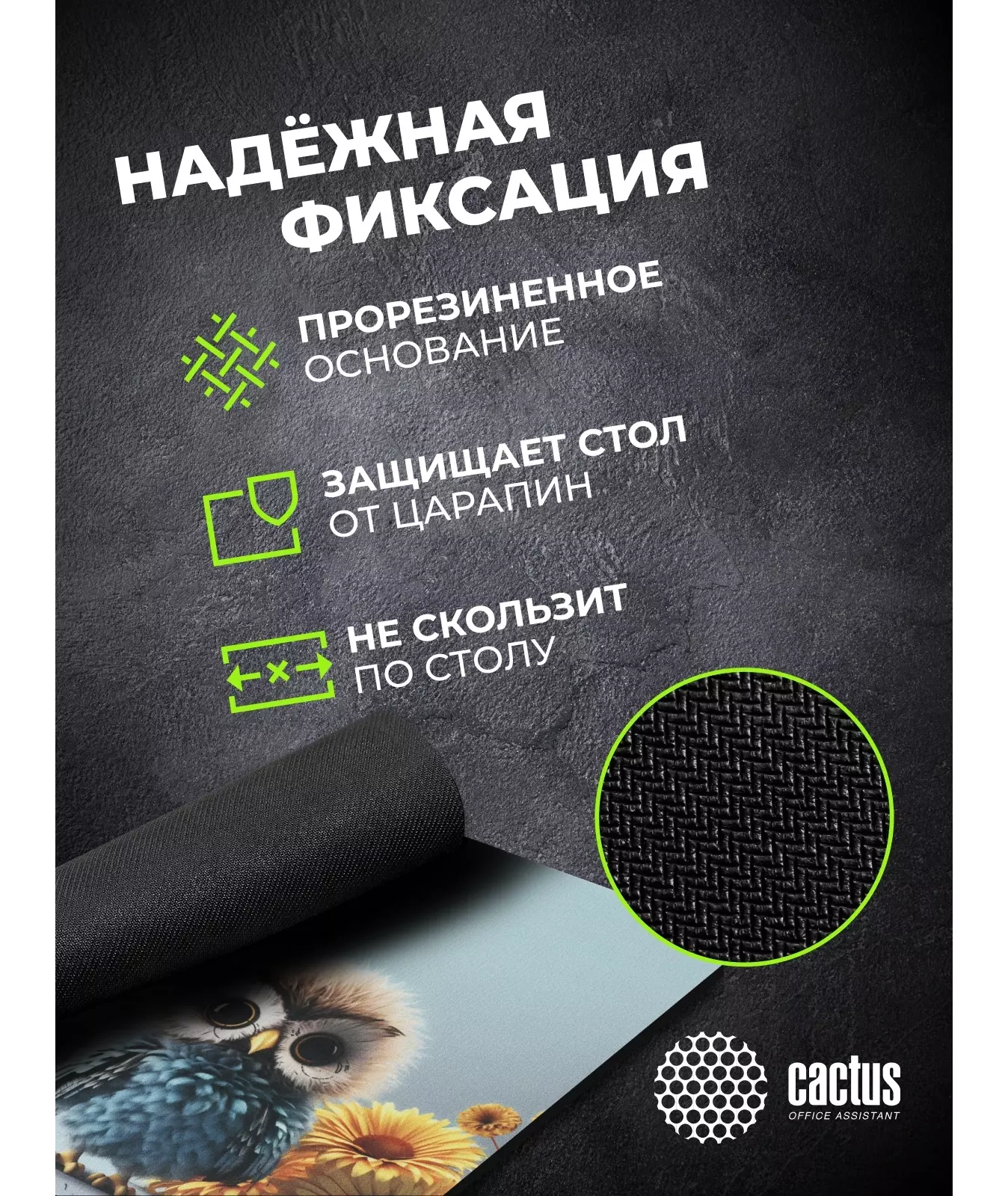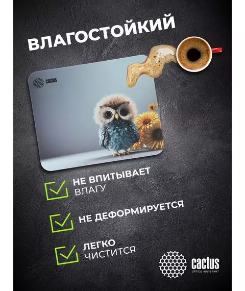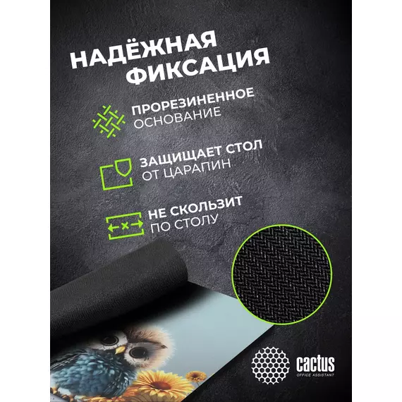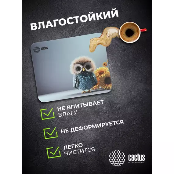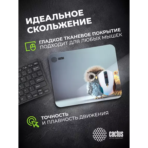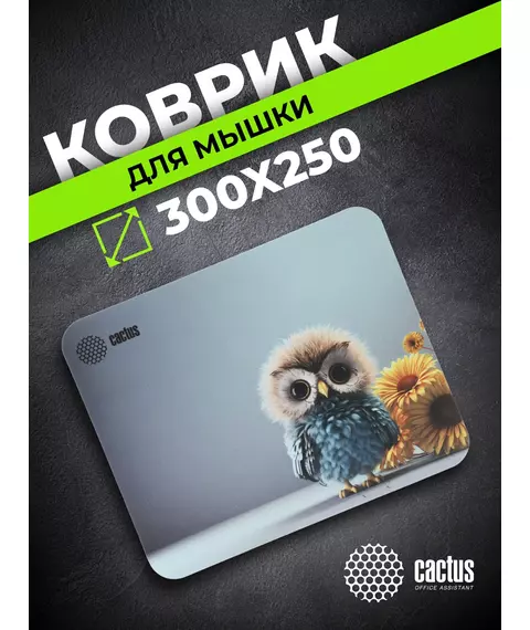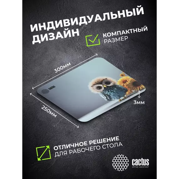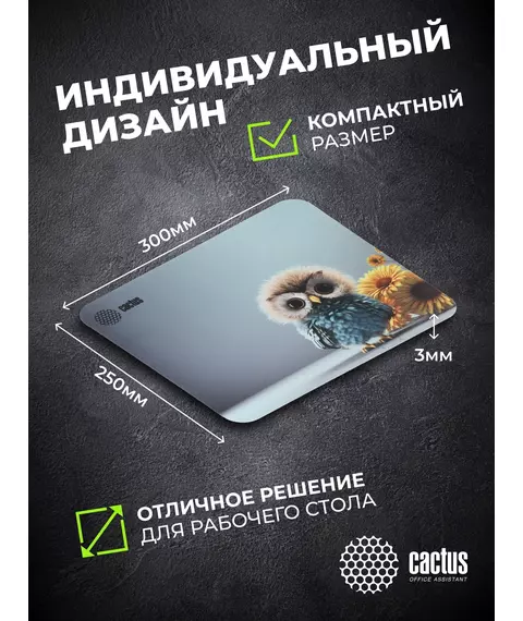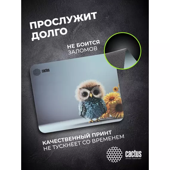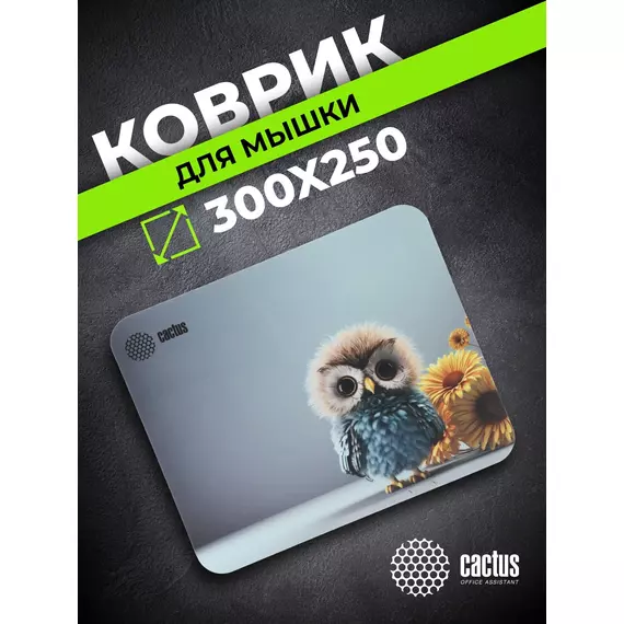 Коврик для мыши Cactus Owl gray рисунок 300x250x3мм [CS-MPC-D12M]