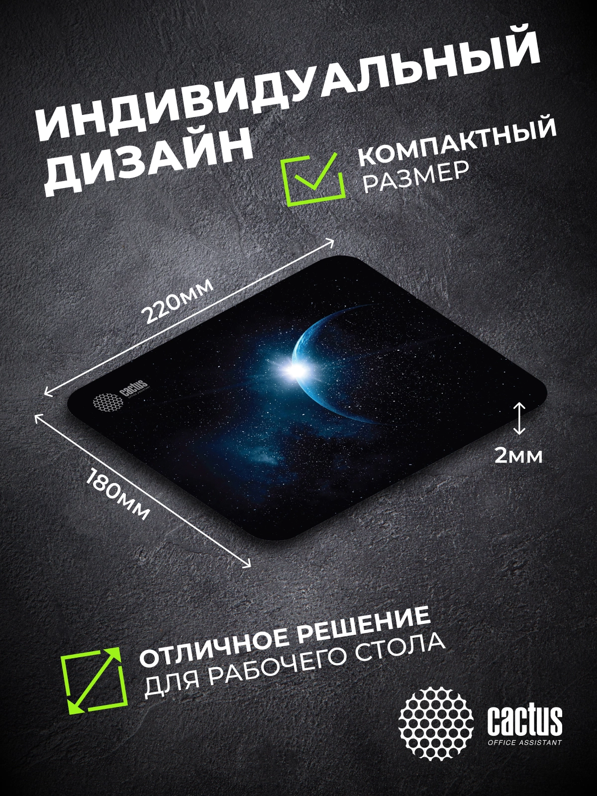 Коврик для мыши Cactus Space рисунок 220x180x2мм [CS-MPC-P04XS]