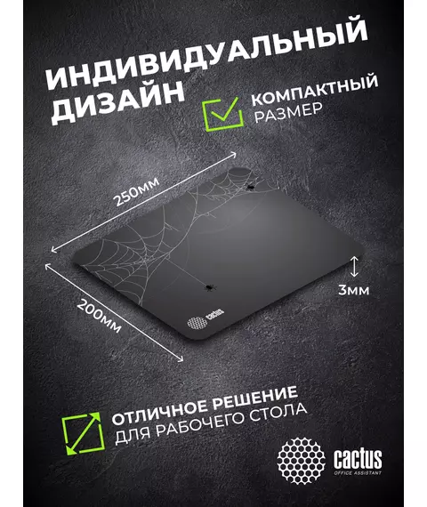 Коврик для мыши Cactus Spider gray черный 250x200x3мм [CS-MP-D13S]