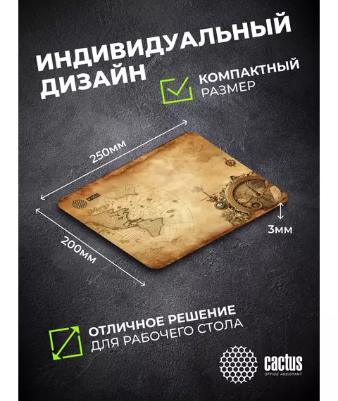 Коврик для мыши Cactus Vintage map 250x200x3мм [CS-MP-D10S]