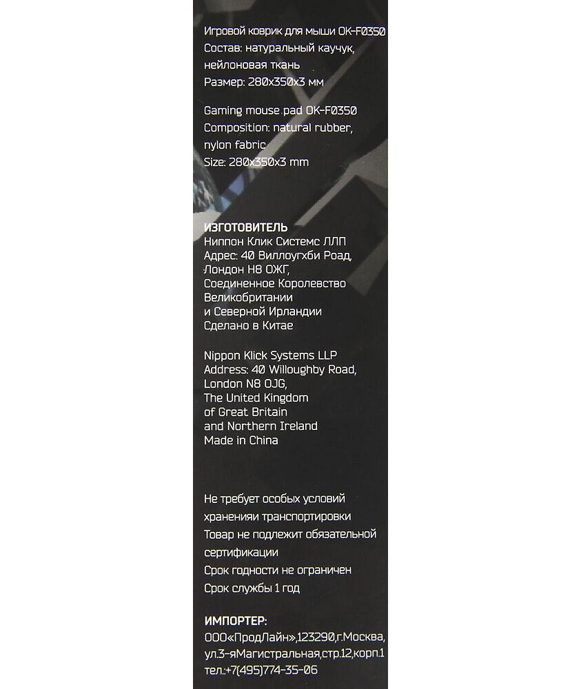 Коврик для мыши Oklick OK-F0350 Средний рисунок/грани 350x280x3мм