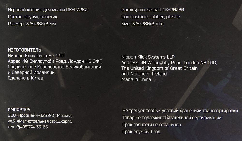Описание Oklick OK-P0280