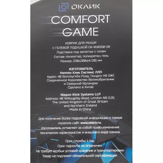 Коврик для мыши Oklick OK-RG0550-GR Мини серый 220x195x20мм