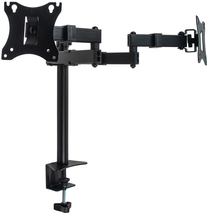 Универсальное настольное крепление для 2-х мониторов. Надежная стальная конструкция- максимальная нагрузка 2х7 кг.