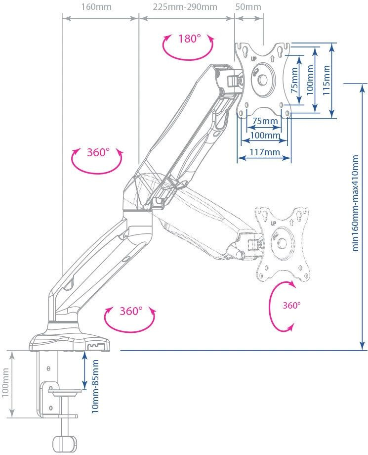 | Подходит для мониторов c диагональю | 15", 19", 22", 26", 32" |