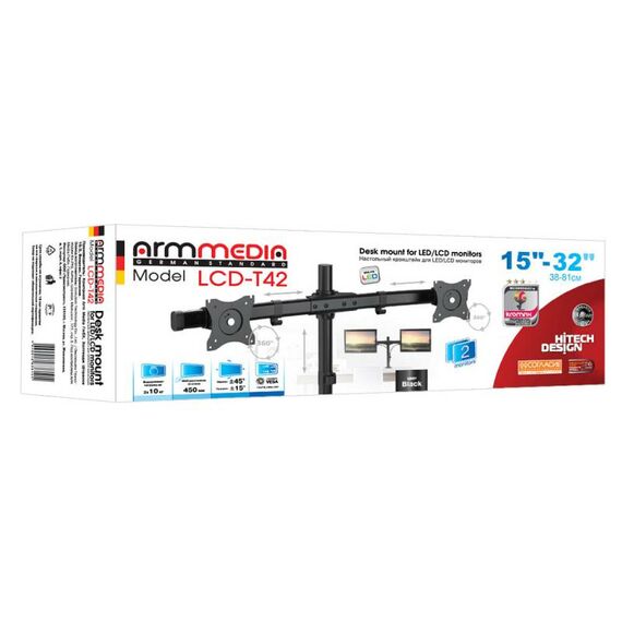 Кронштейн для мониторов ARM Media LCD-T42 черный 15"-32" макс.20кг настольный поворот и наклон верт.перемещ. [10165]