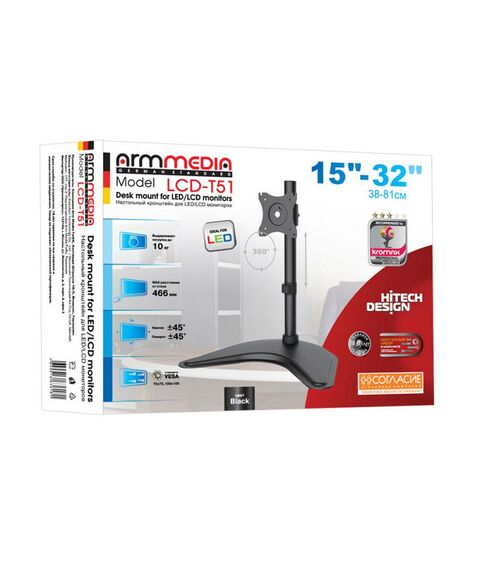 Кронштейн для мониторов ARM Media LCD-T51 черный 15"-32" макс.10кг настольный поворот и наклон верт.перемещ. [10167]