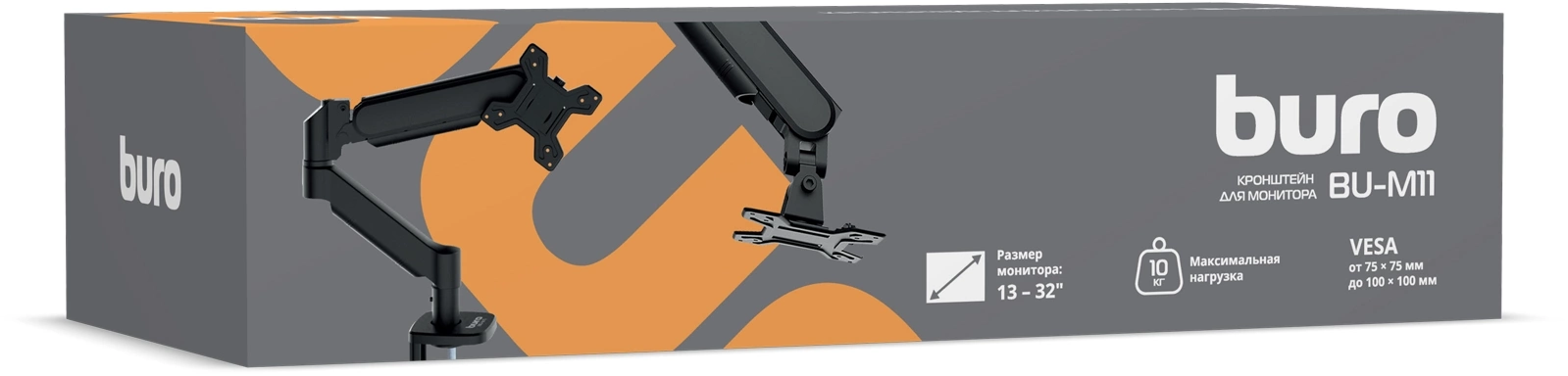 Кронштейн для мониторов BURO BU-M11 черный 17"-32" макс.10кг крепление к столешнице поворот и наклон