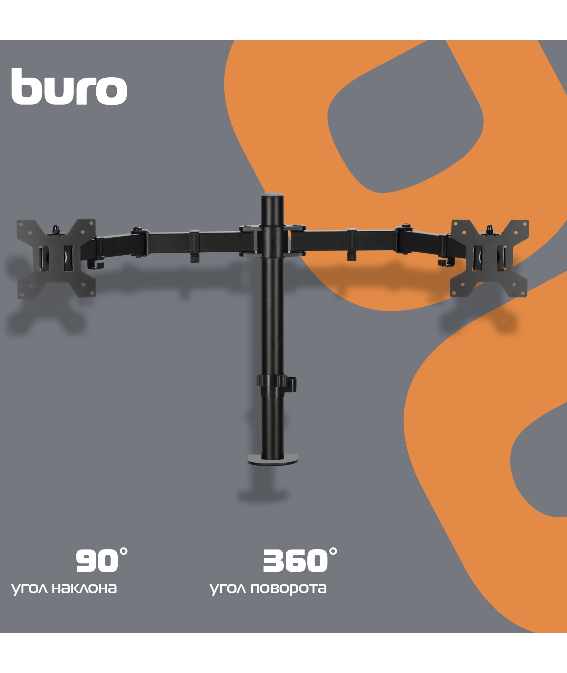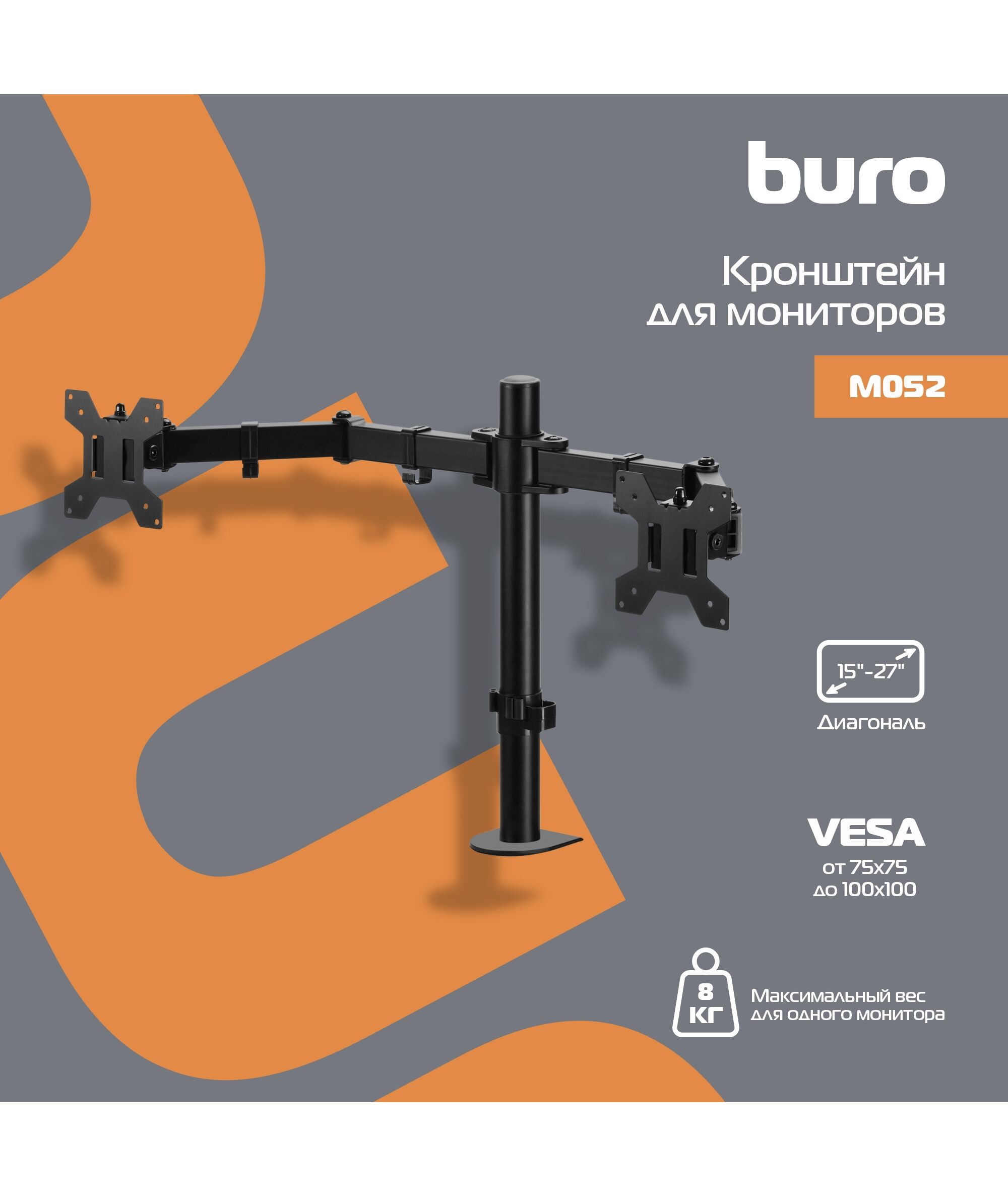 Кронштейн для мониторов BURO M052 черный 15"-27" макс.16кг крепление к столешнице поворот и наклон