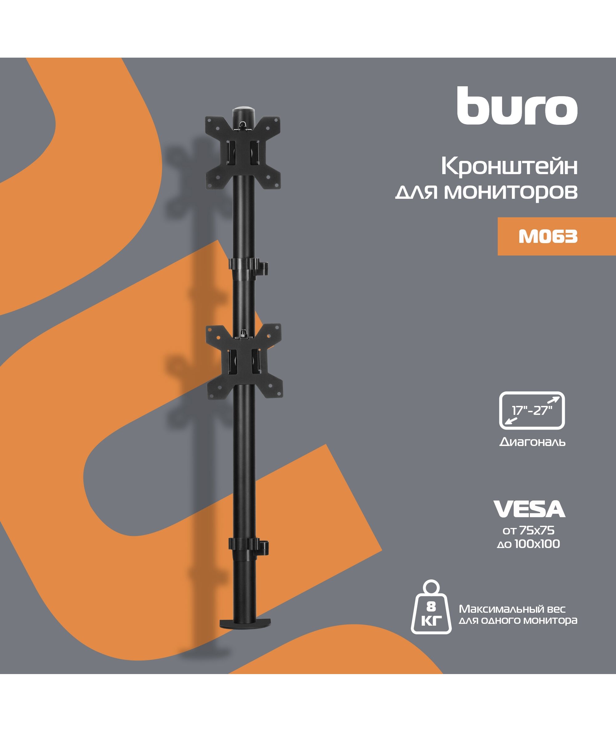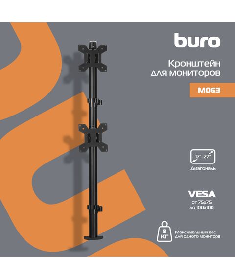 Кронштейн для мониторов BURO M063 черный 17"-27" макс.8кг крепление к столешнице поворот и наклон
