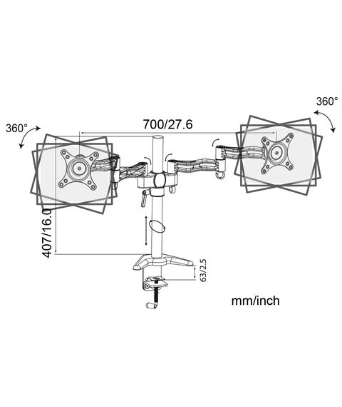 | Подходит для мониторов c диагональю | 15", 19", 22", 26" |