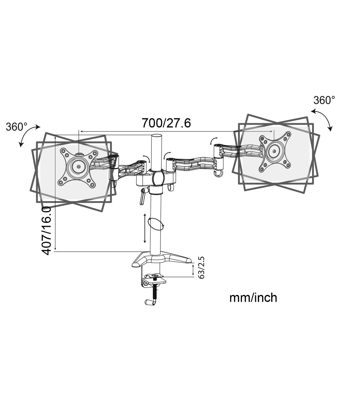 | Подходит для мониторов c диагональю | 15", 19", 22", 26" |