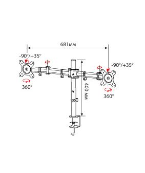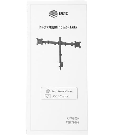 Кронштейн для мониторов Cactus CS-VM-D29-AL серебристый 13"-27" макс.8кг настольный поворот и наклон