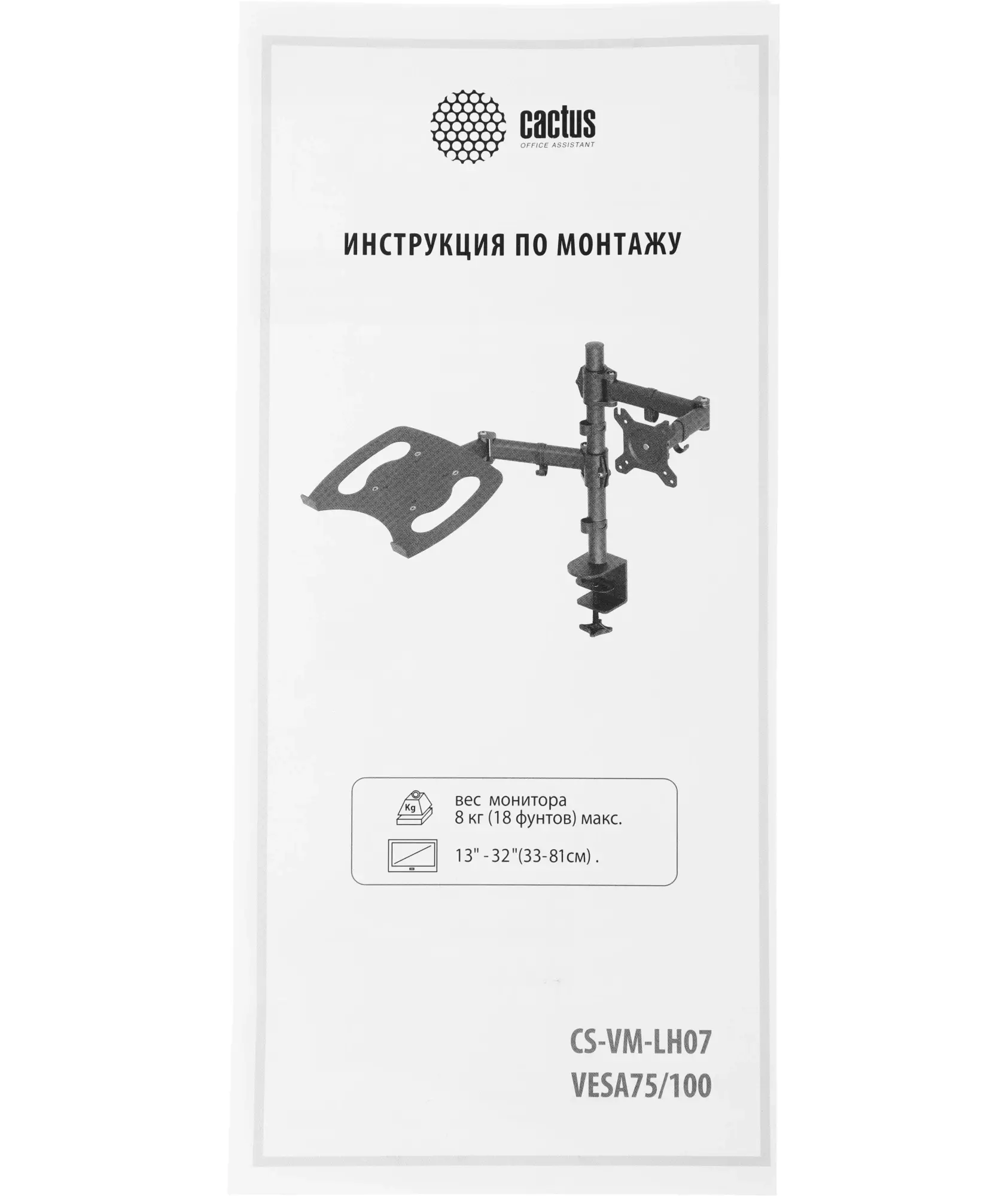 Кронштейн для монитора/ноутбука Cactus CS-VM-LH07-AL серебряный 13"-27" макс.8кг настольный поворот и наклон