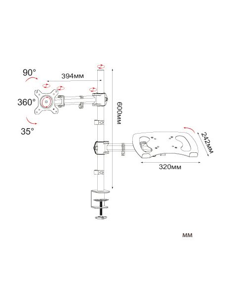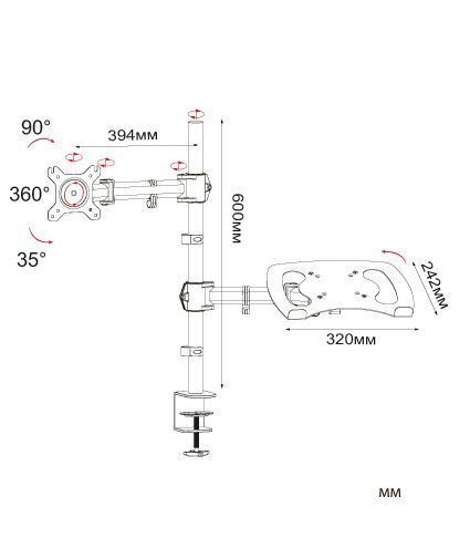 | Подходит для мониторов c диагональю | 15", 19", 22", 26" |