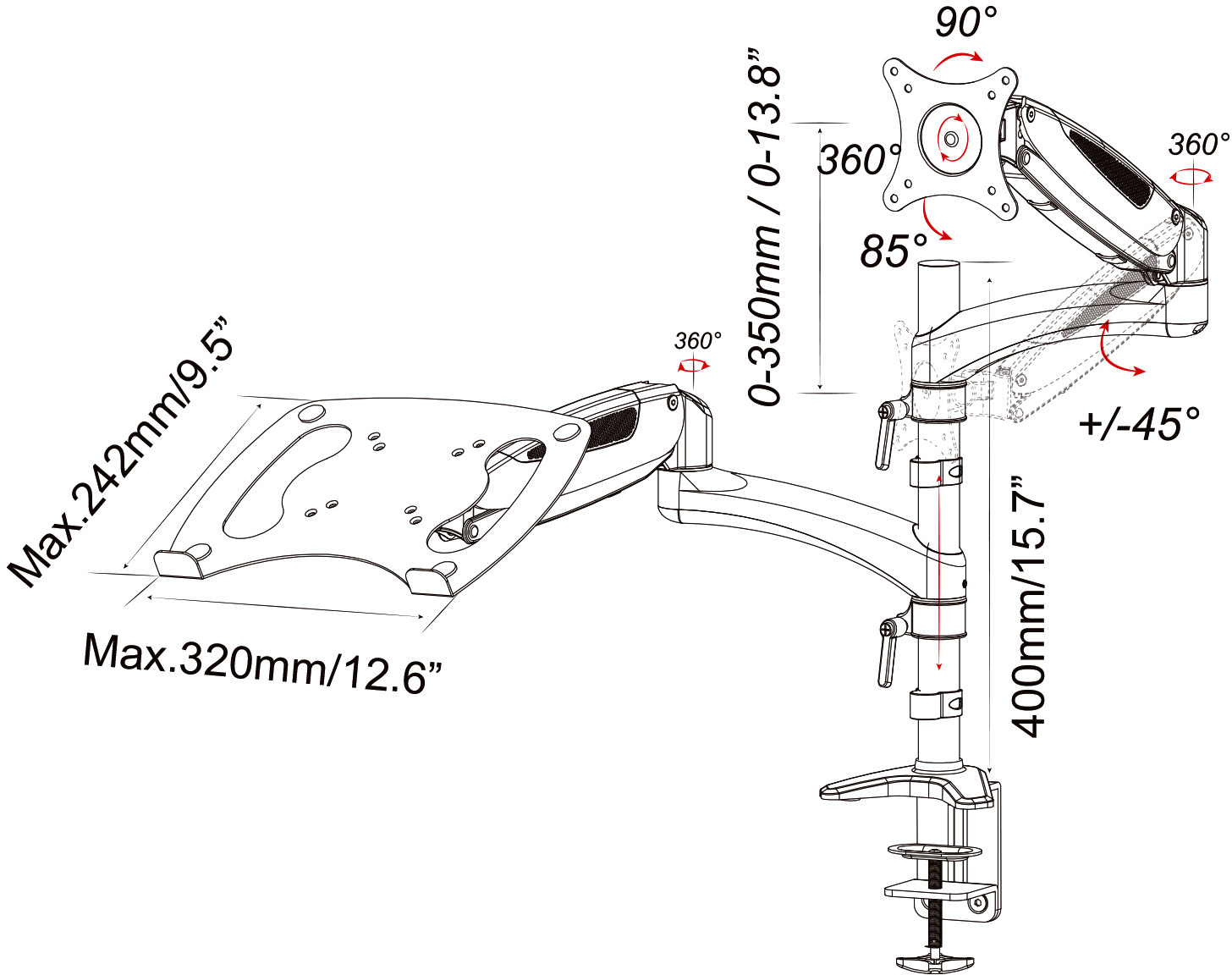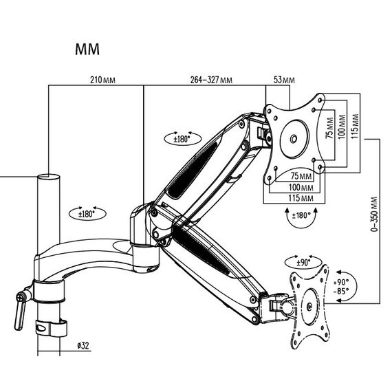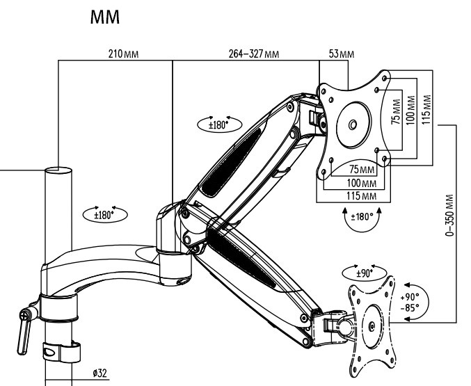| Подходит для мониторов c диагональю | 15", 19", 22", 26" |
