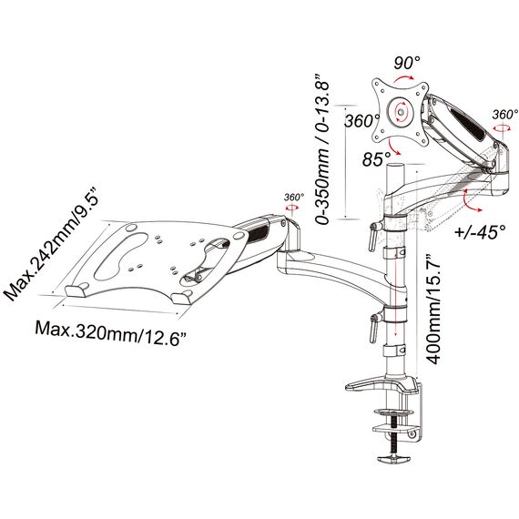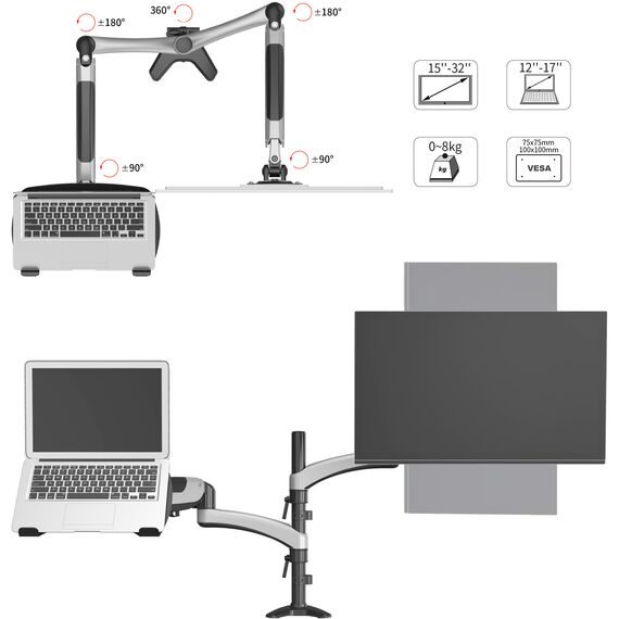 Кронштейн для монитора/ноутбука Cactus CS-VM-LH08-AL серебряный 13-27 макс.8кг настольный поворот и наклон