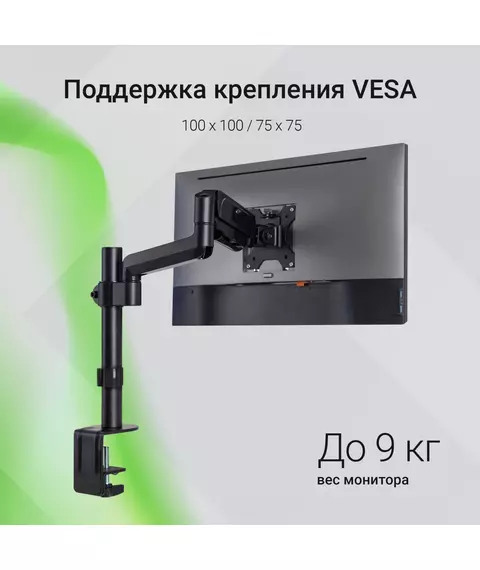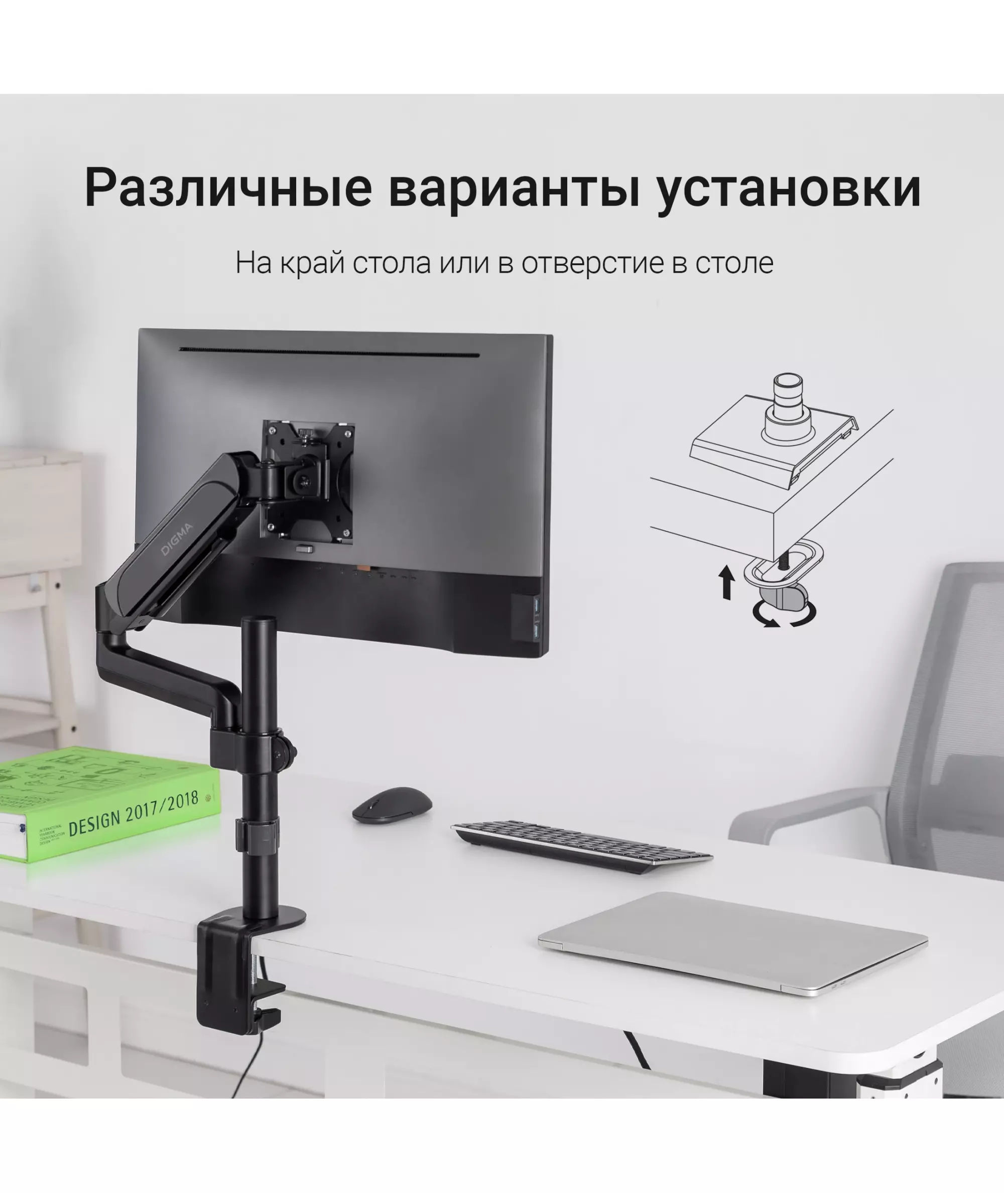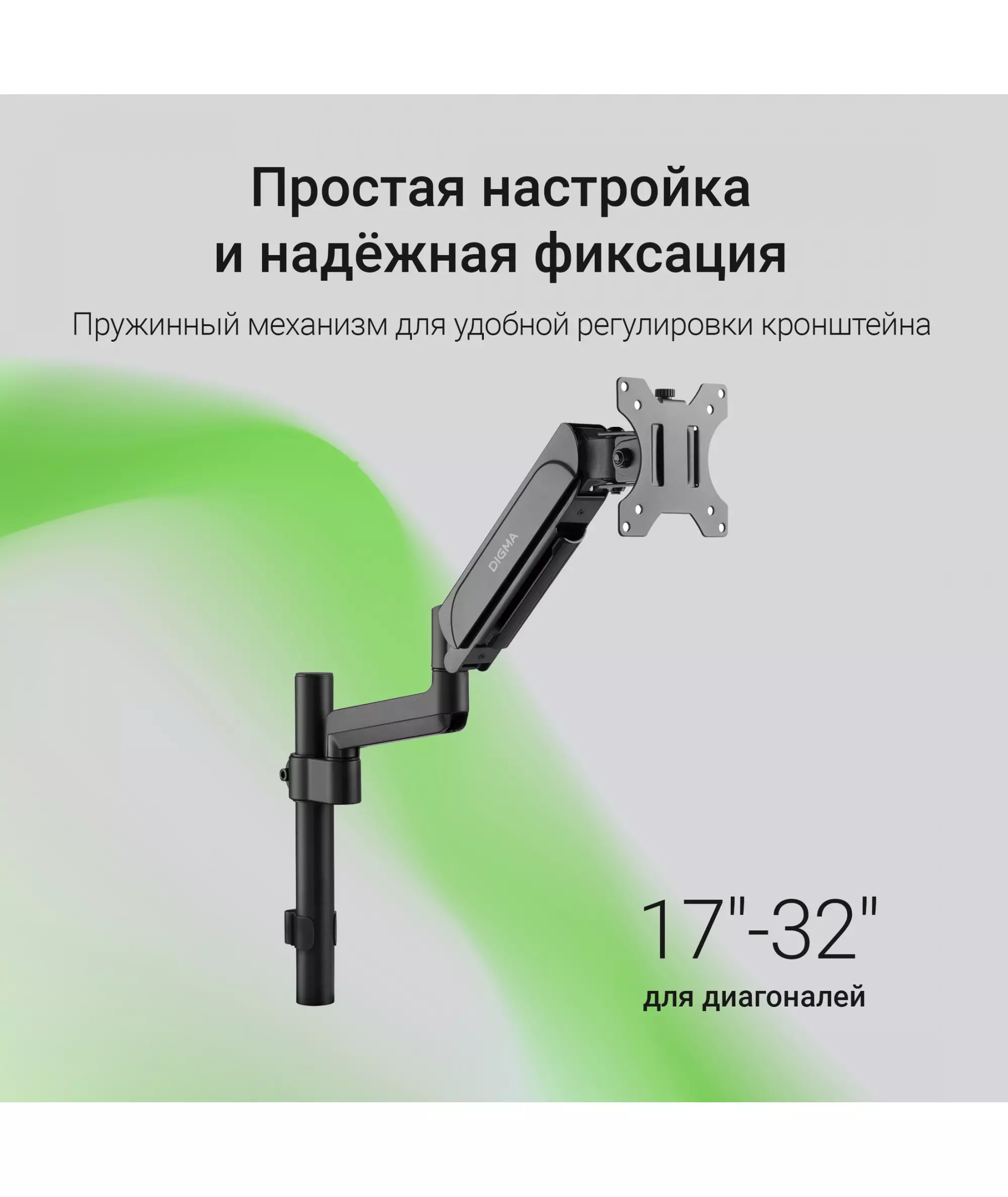 Кронштейн для мониторов ЖК Digma D-MM201 черный 17"-32" макс.9кг крепление к столешнице поворот и наклон