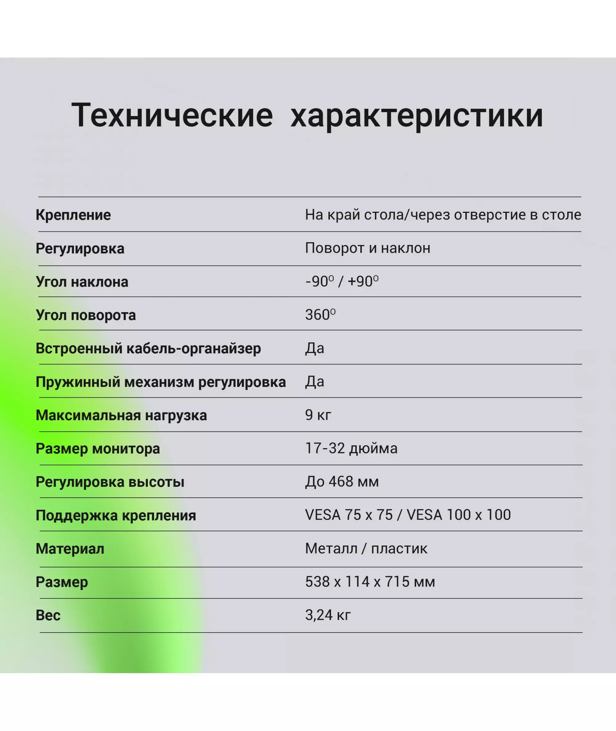 | Подходит для мониторов c диагональю | 19", 22", 26", 32" |