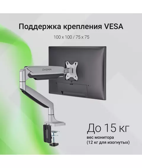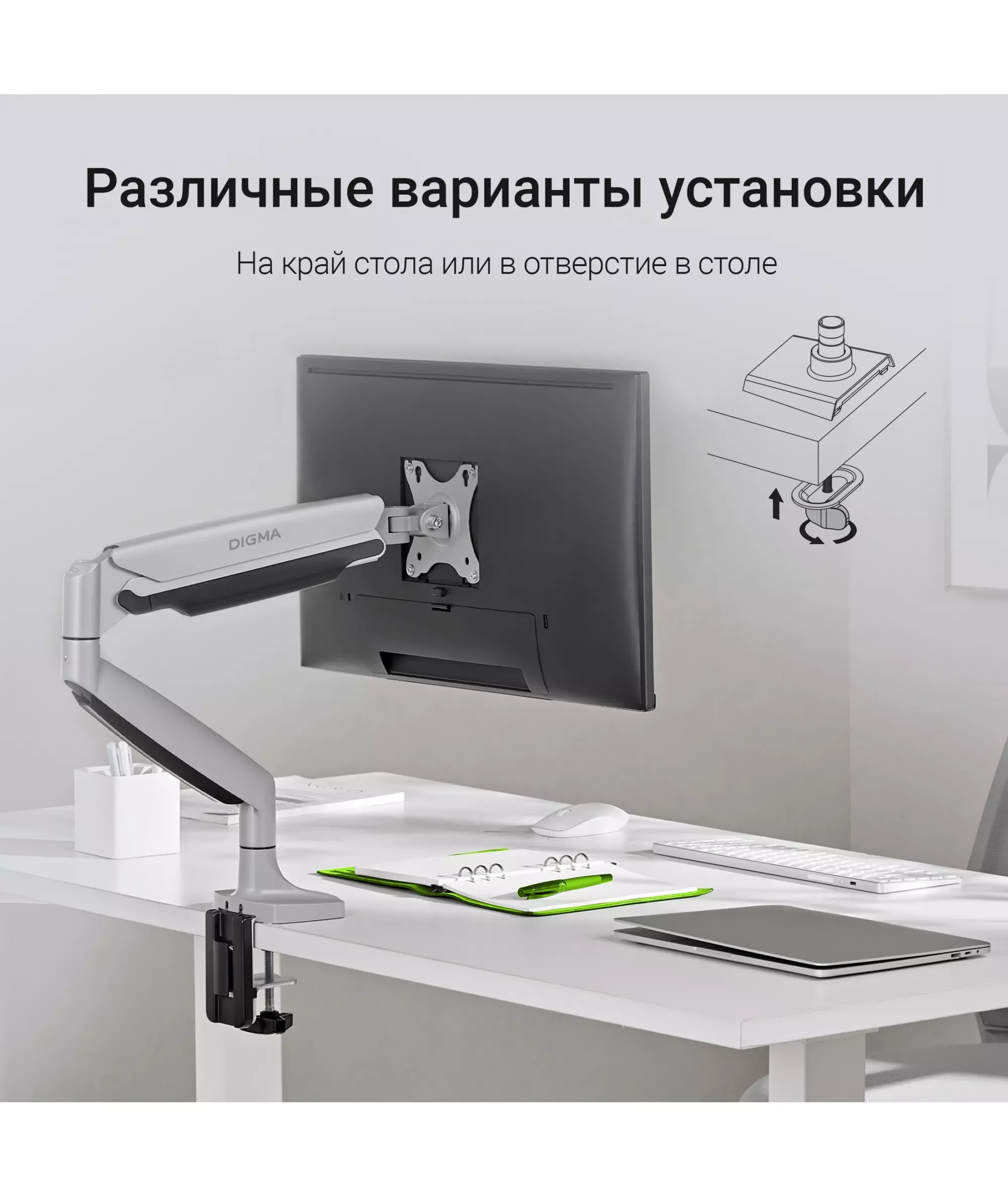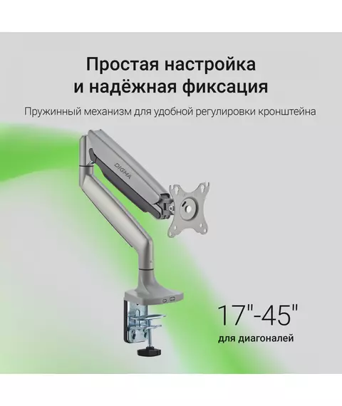 Кронштейн для мониторов ЖК Digma D-MM301 серый 17"-45" макс.15кг крепление к столешнице поворот и наклон
