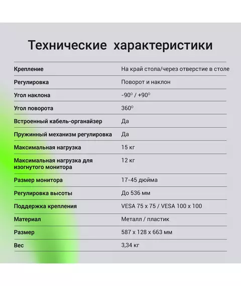 | Подходит для мониторов c диагональю | 19", 22", 26", 32", 37", 40", 45" |