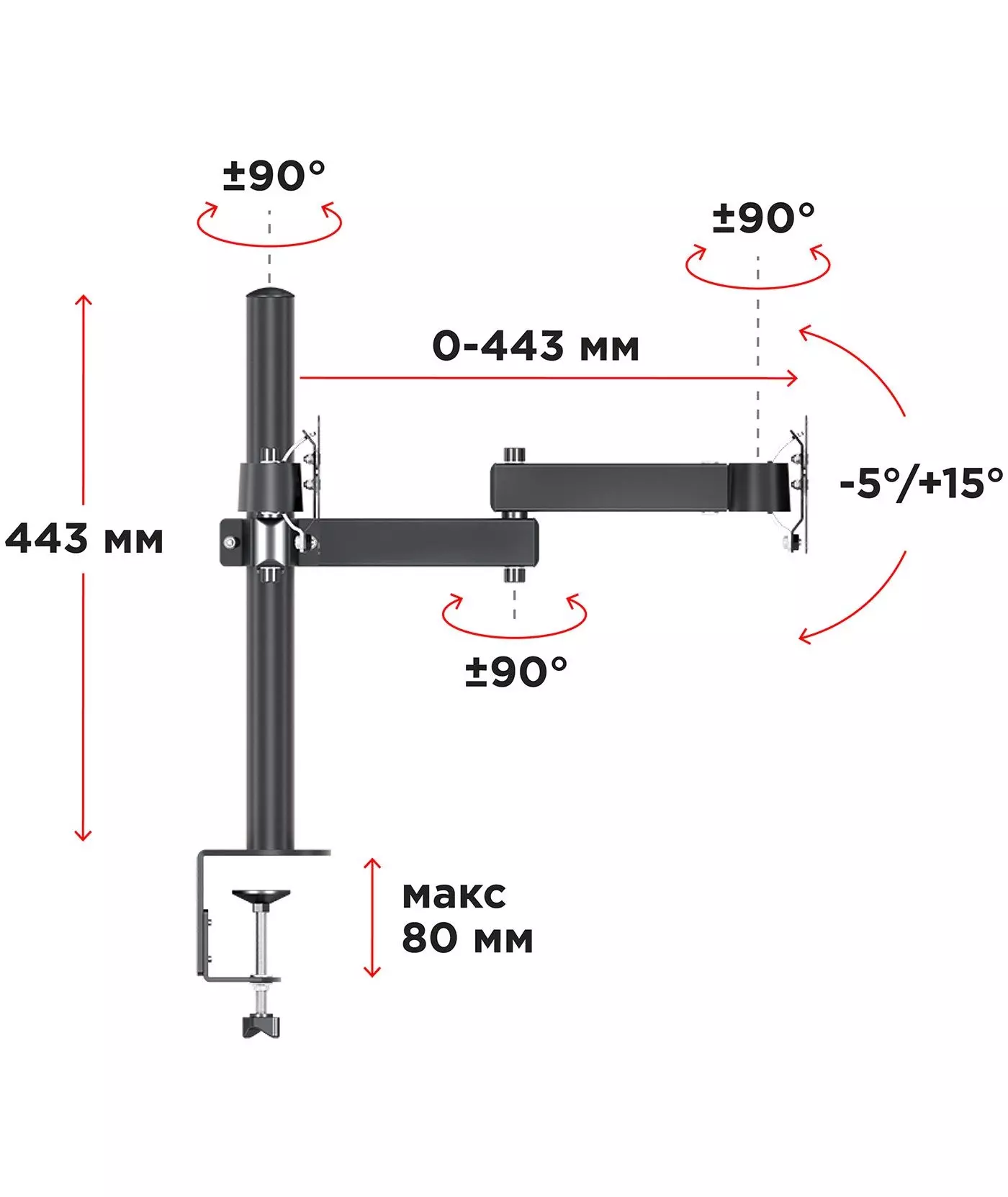 | Подходит для мониторов c диагональю | 13", 15", 19", 22", 26", 32" |
