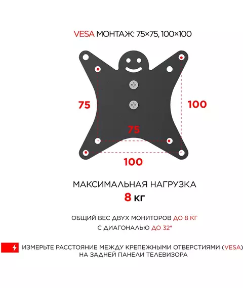 | Поддержка крепления VESA | 100x100, 75x75 |