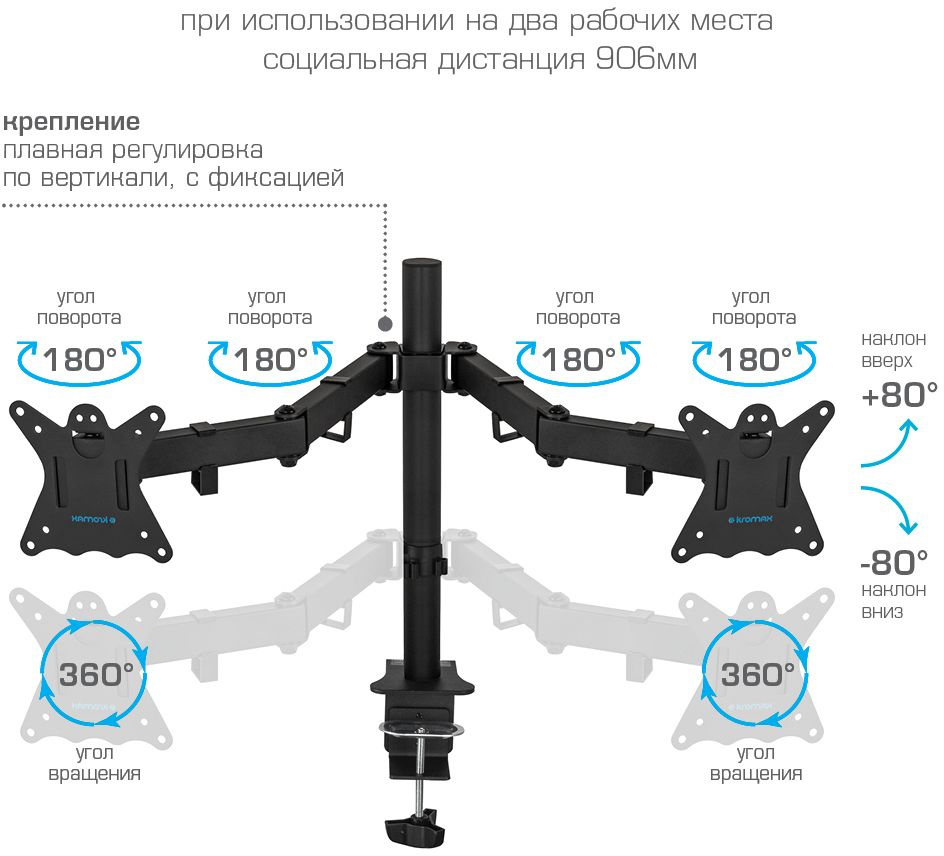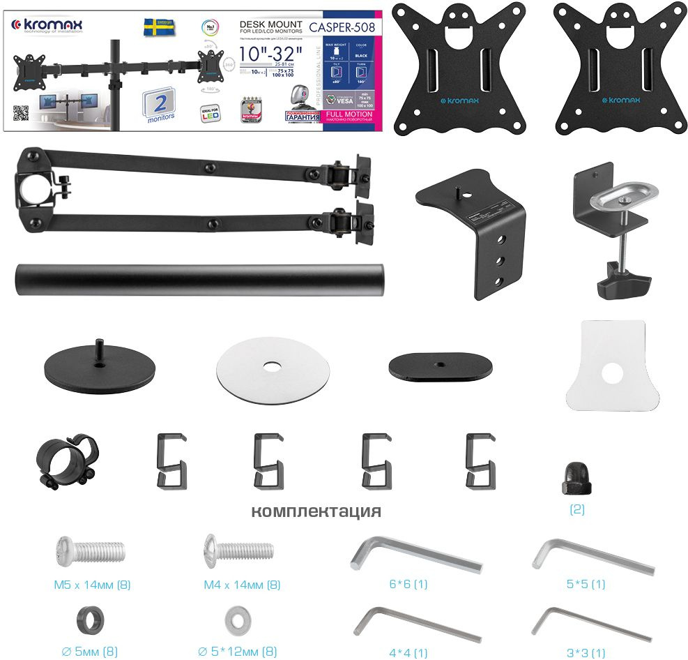 Кронштейн для мониторов Kromax CASPER-508 черный 10"-32" макс.10кг настольный поворот и наклон [90421]