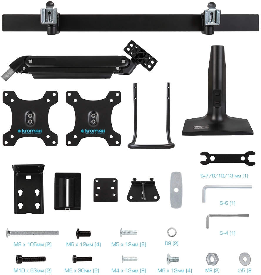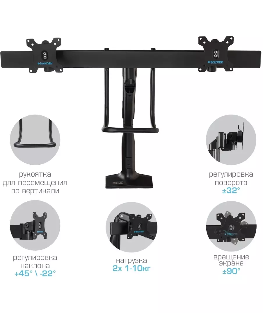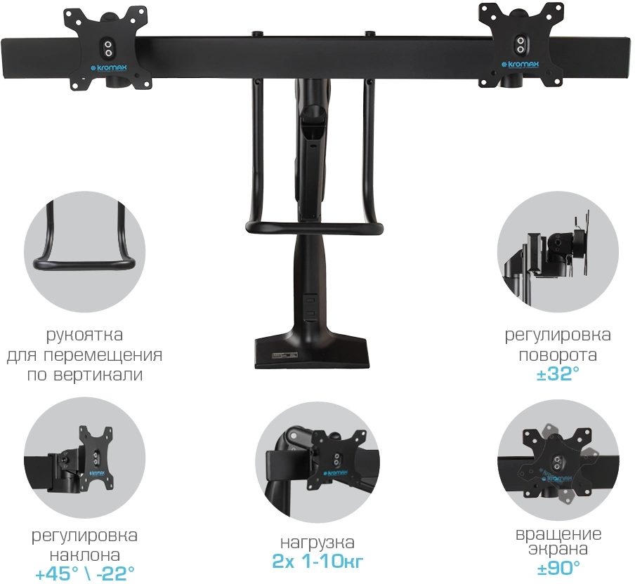 Кронштейн для мониторов Kromax OFFICE-20 черный 17-35 макс. 10кг настольный поворот и наклон [90634]