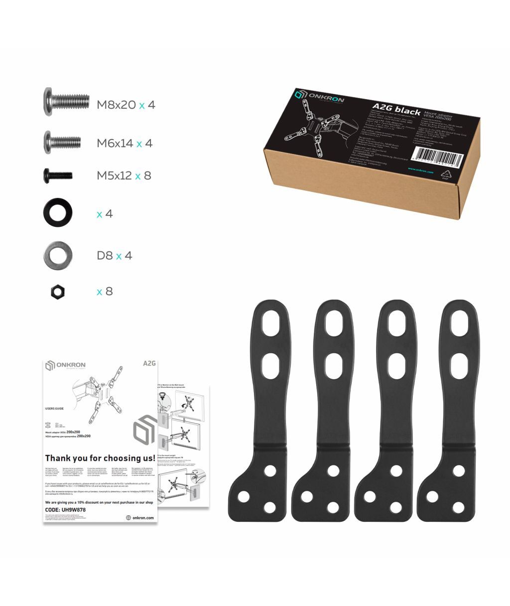 Универсальный адаптер ONKRON A2G предназначен для установки мониторов с размерами монтажных отверстий 100х200, 200х100, 200х200 на любой кронштейн ONKRON с VESA-панелью, обладающей монтажными отверстиями 75х75 и 100х100 мм.