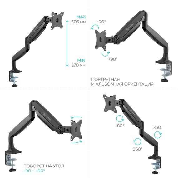 | Подходит для мониторов c диагональю | 15", 19", 22", 26", 32" |