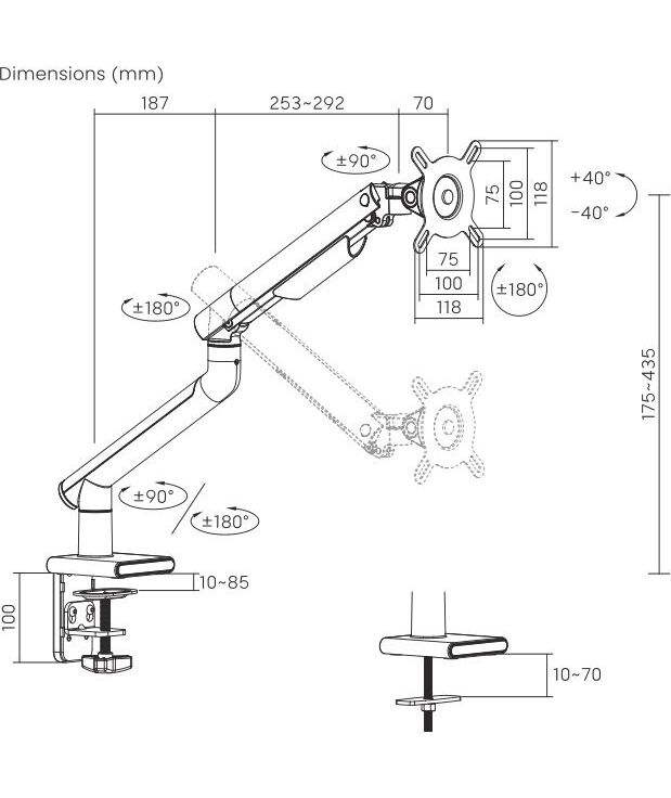 | Особенности | Настольный кронштейн для монитора с системой газ-лифт. Встроенная система организации кабелей поможет для организованного и аккуратного рабочего пространства. |