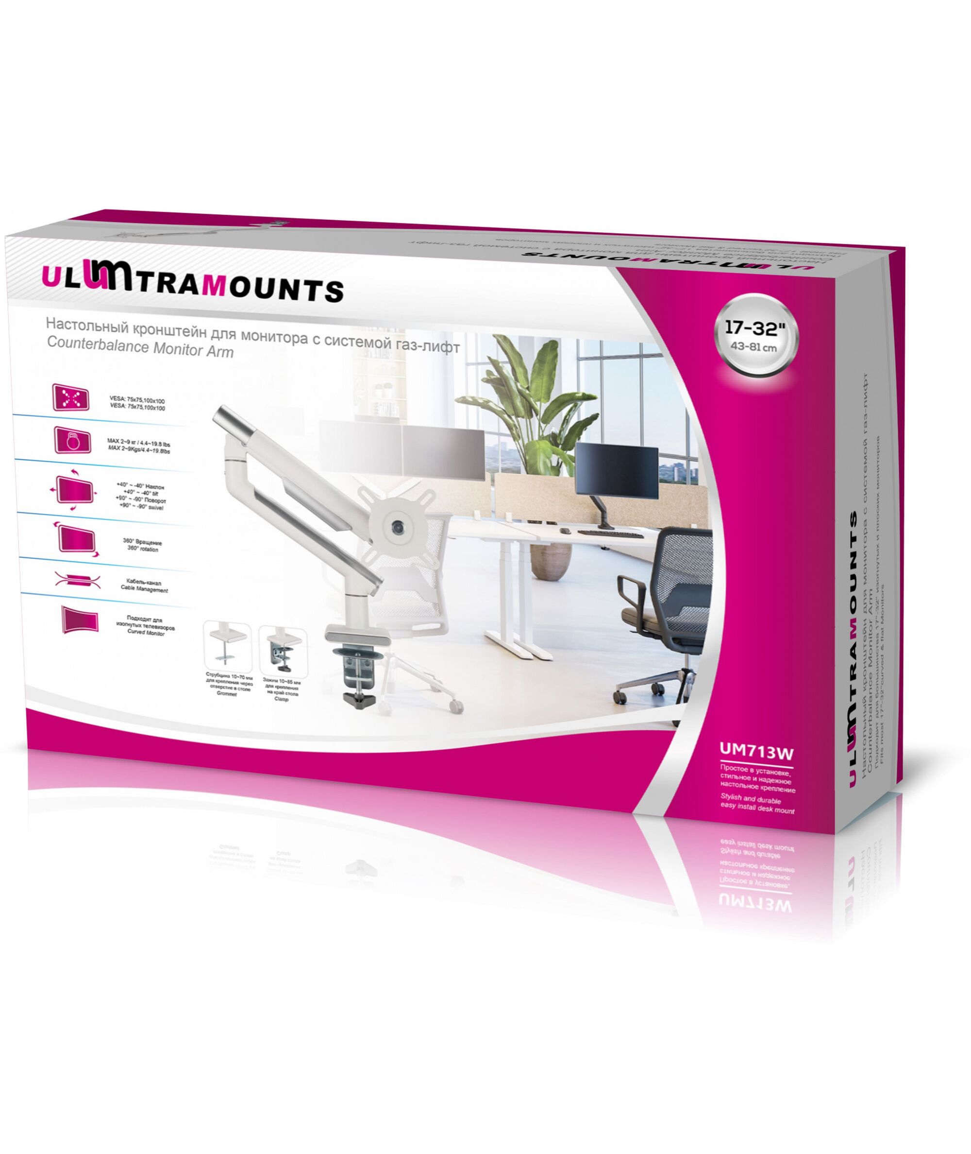Кронштейн для мониторов Ultramounts UM713W белый 17-32 макс.9кг крепление к столешнице поворот и наклон