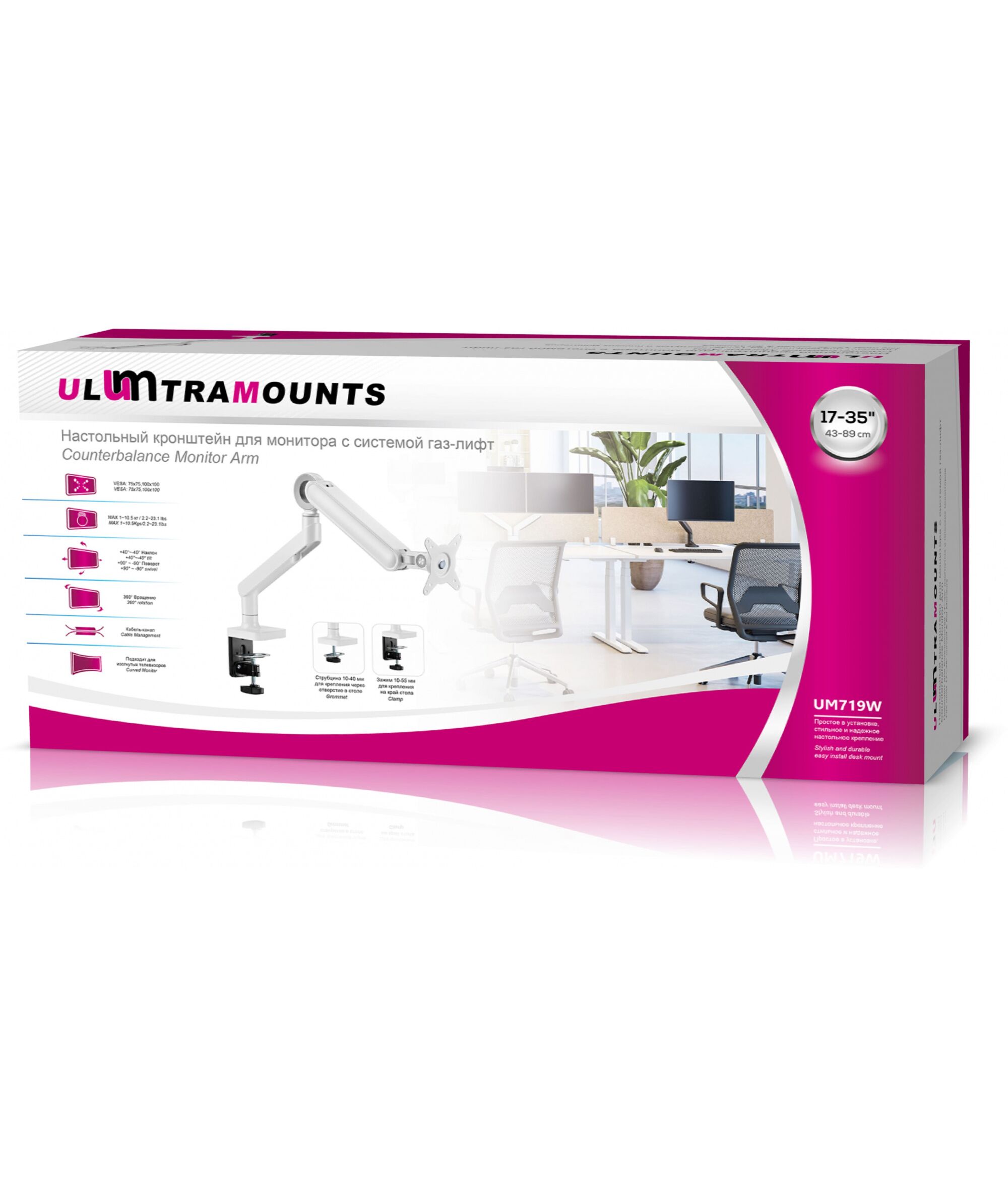 Кронштейн для мониторов Ultramounts UM719W белый 17"-35" макс.10.5кг крепление к столешнице поворот и наклон