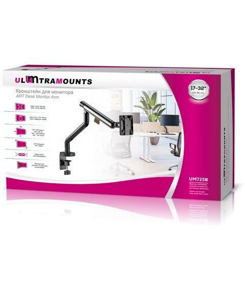 Кронштейн для мониторов Ultramounts UM725B черный 17"-32" макс.9кг крепление к столешнице поворот и наклон
