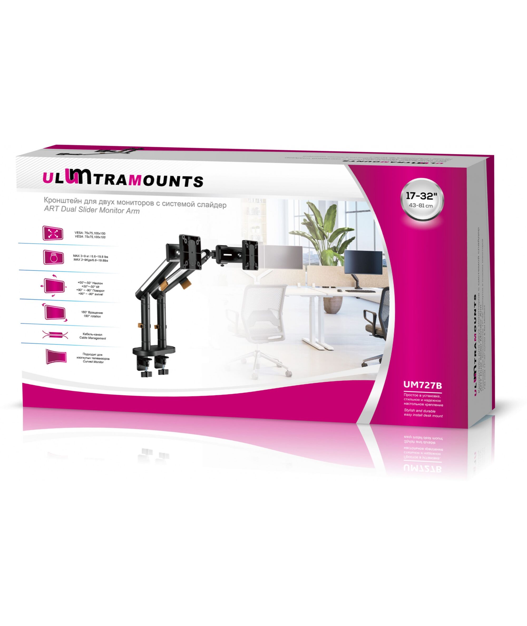 | Особенности | Настольный кронштейн для двух мониторов с системой слайдер. |