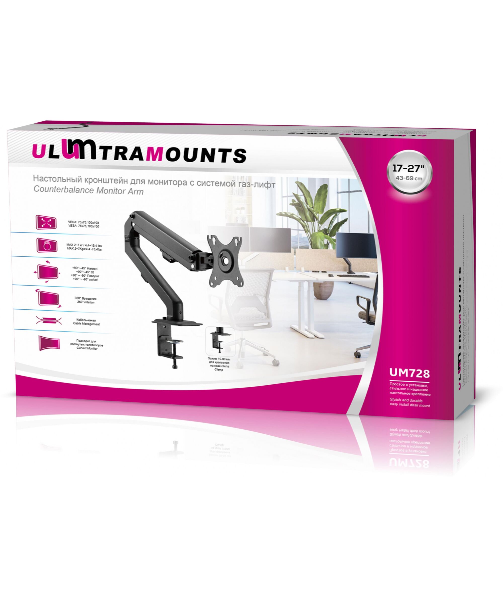 Кронштейн для мониторов Ultramounts UM728 черный 17"-27" макс.7кг крепление к столешнице поворот и наклон