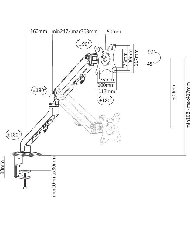 | Особенности | Настольный кронштейн для монитора с системой газ-лифт. Пружинный механизм позволяет легко перемещаться вверх и вниз. |