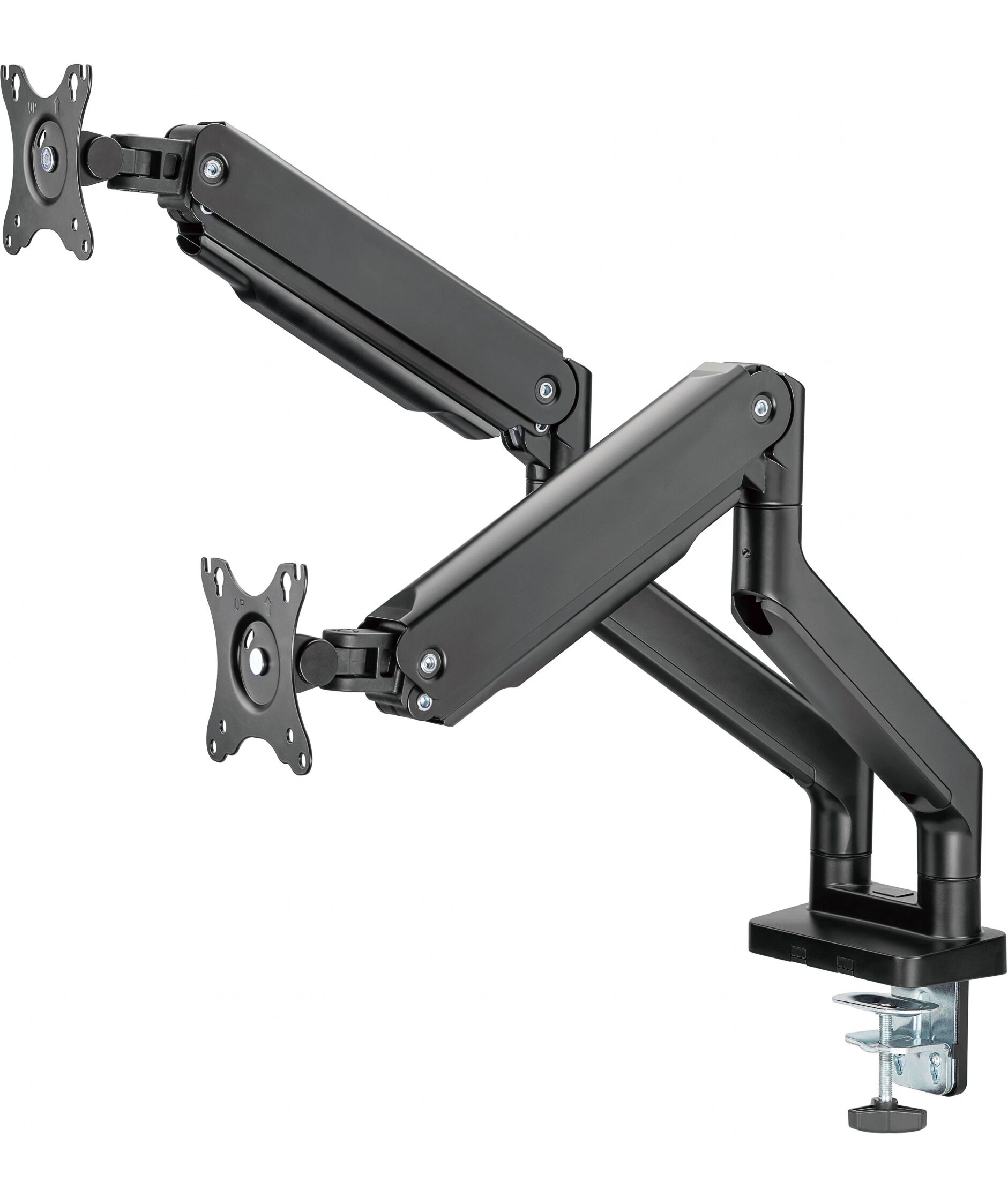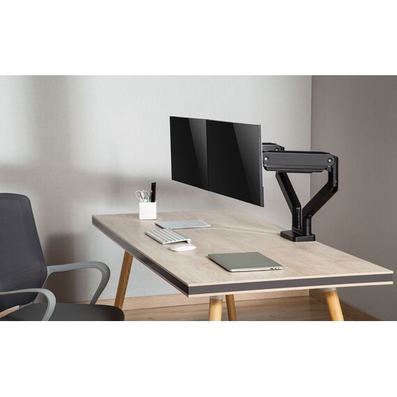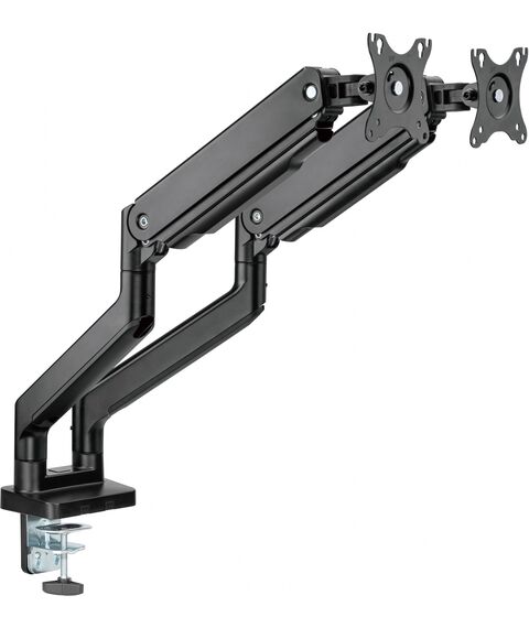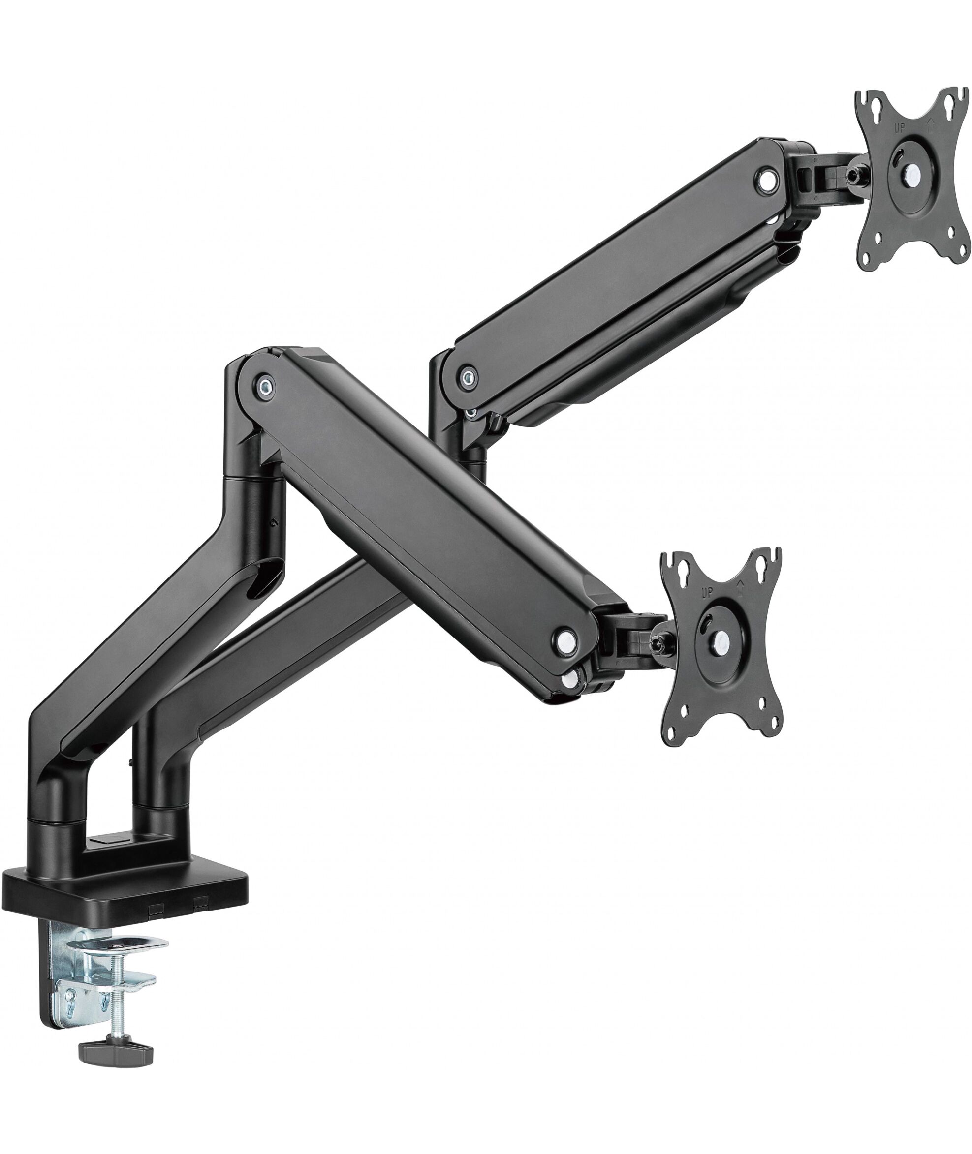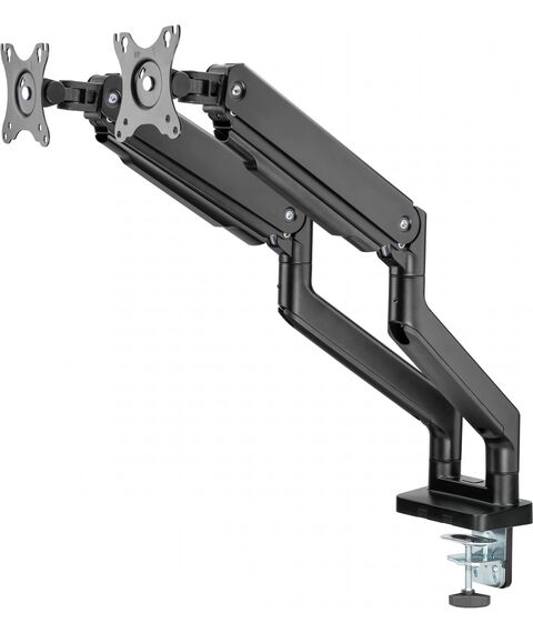 | Особенности | Настольный кронштейн с двумя креплениями под мониторы. Пружинный механизм позволяет легко перемещаться вверх и вниз. |