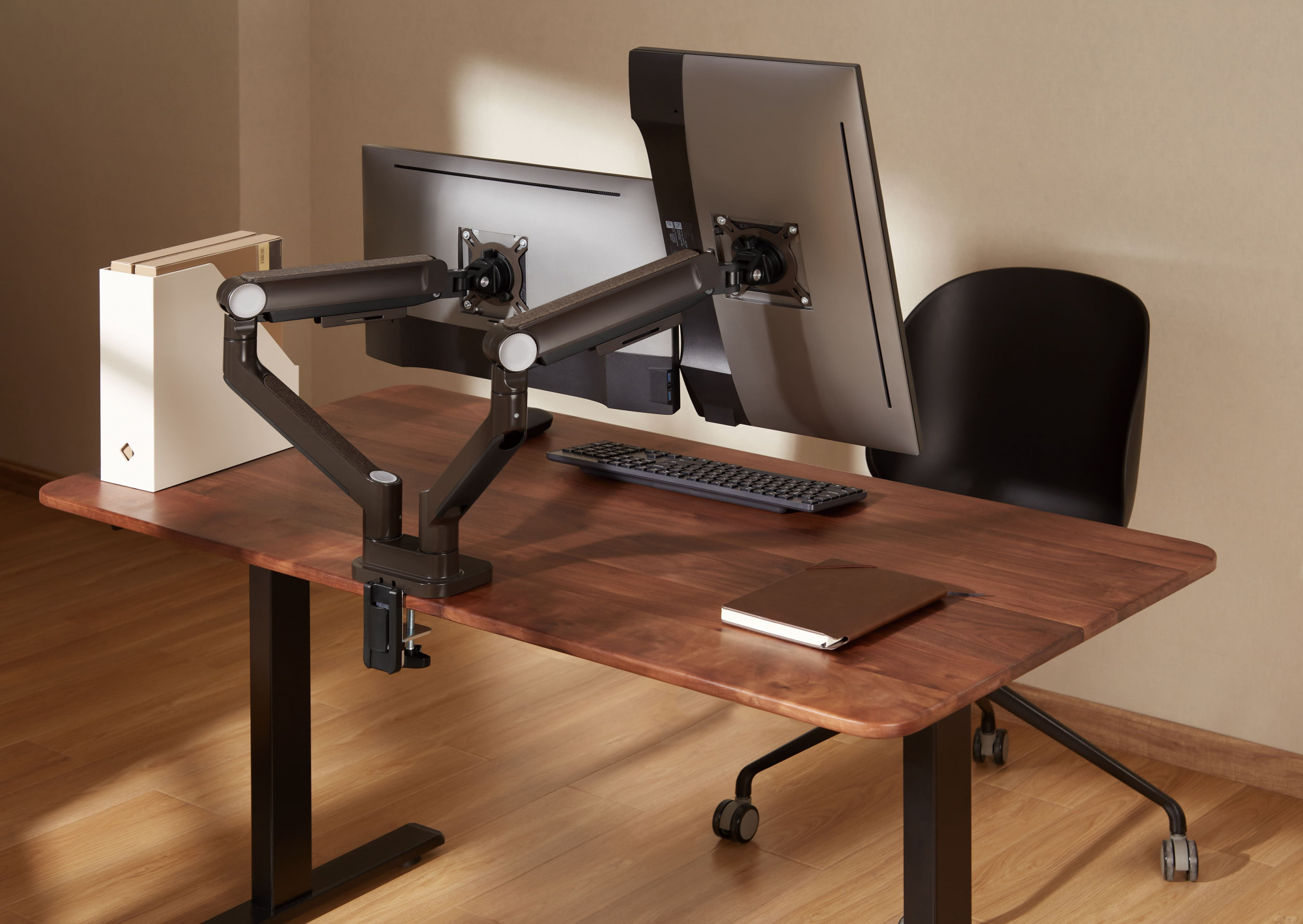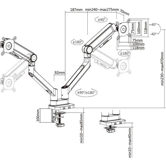 | Особенности | Встроенный пружинный механизм натяжения поможет для идеальной регулировки веса. Съемная пластина VESA позволяет легко устанавливать и снимать монитор. |